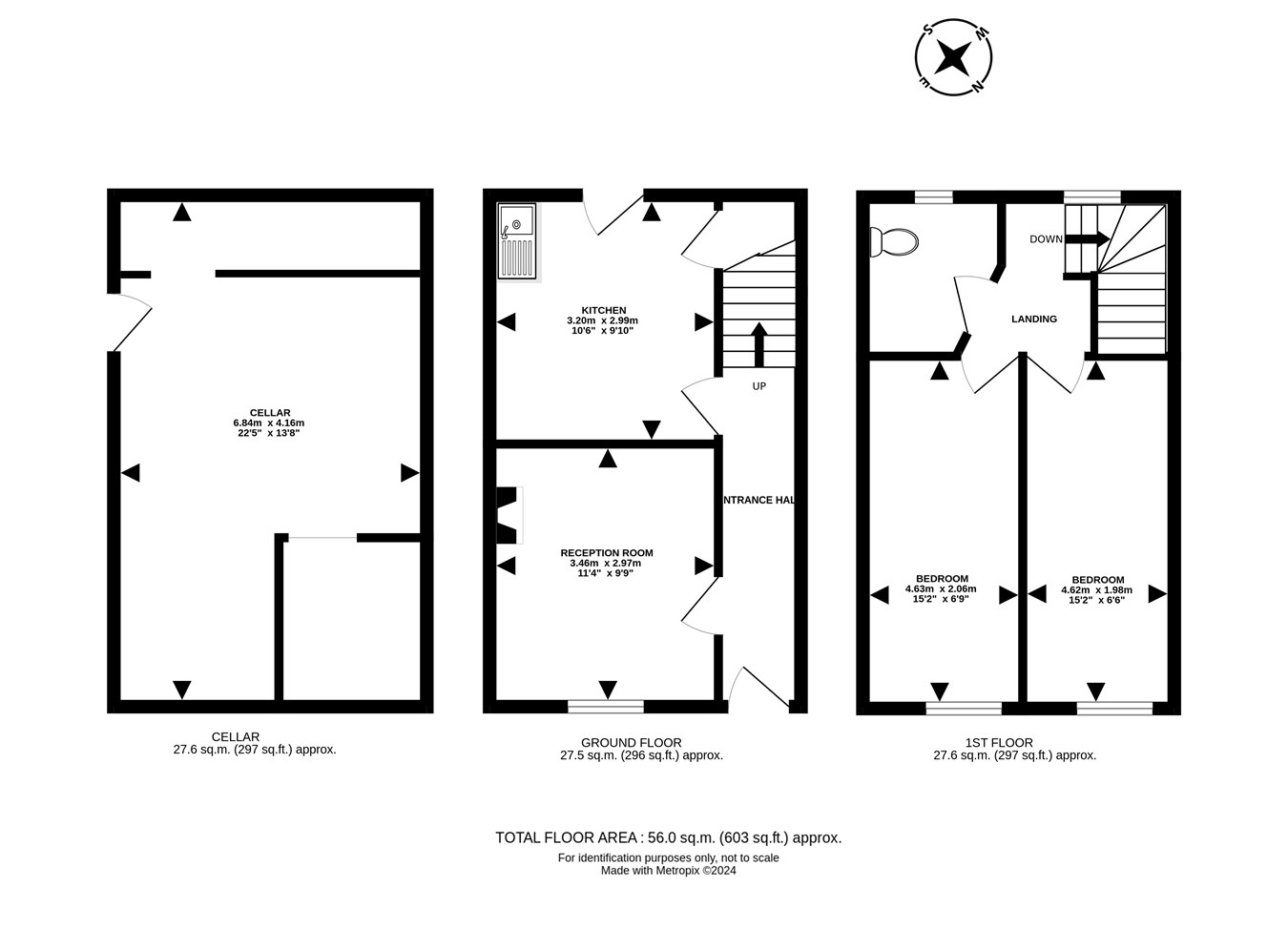 • Useful 6.84 x 4.16m cellar with external access