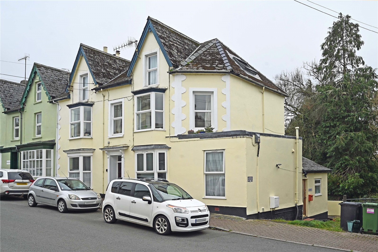 A well proportioned 4-storey, end of terrace property built from brick walls with rendered and coloured elevations, under pitched slate roofs. It has been sub-divided into five self-contained flats for many years and updated to provide comfortable homes that attract long term tenants. It has PVC double-glazing, door intercom system, four flats have gas central heating and one has electric heating. It briefly provides: - Ground Floor - Two 1-bed flats First Floor - One large 2-bed, 2-bath flat; Second Floor - A spacious 1-bed flat. In addition there is a large 2-storey maisonette at the rear with a 32’ Lounge / Diner, Kitchen, Inner Hall, Bathroom, Landing, two double Bedrooms (1 with en-suite shower room) and an enclosed rear patio garden. Council Tax - Band A (for the three 1-bed flats), Band C (2 bed-flats).