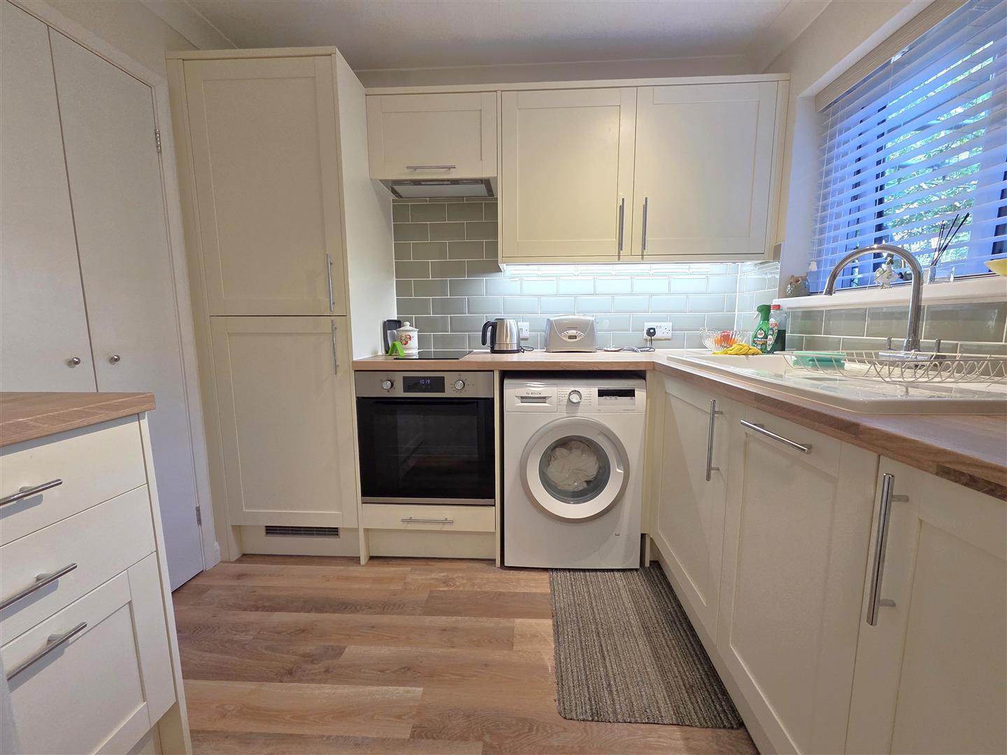 Integrated appliances include oven, hob, fridge/freezer, slimline dishwasher & space for washing machine