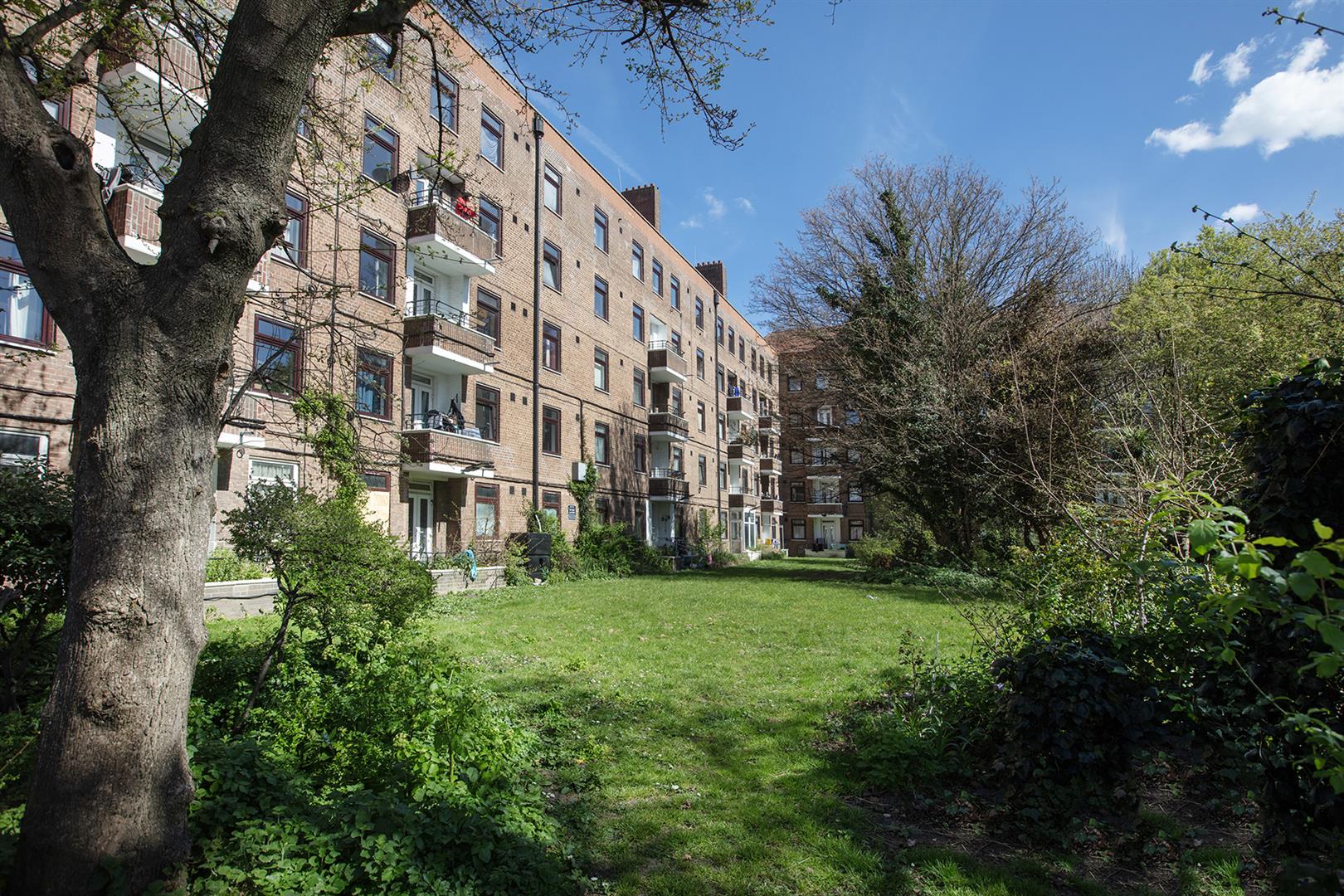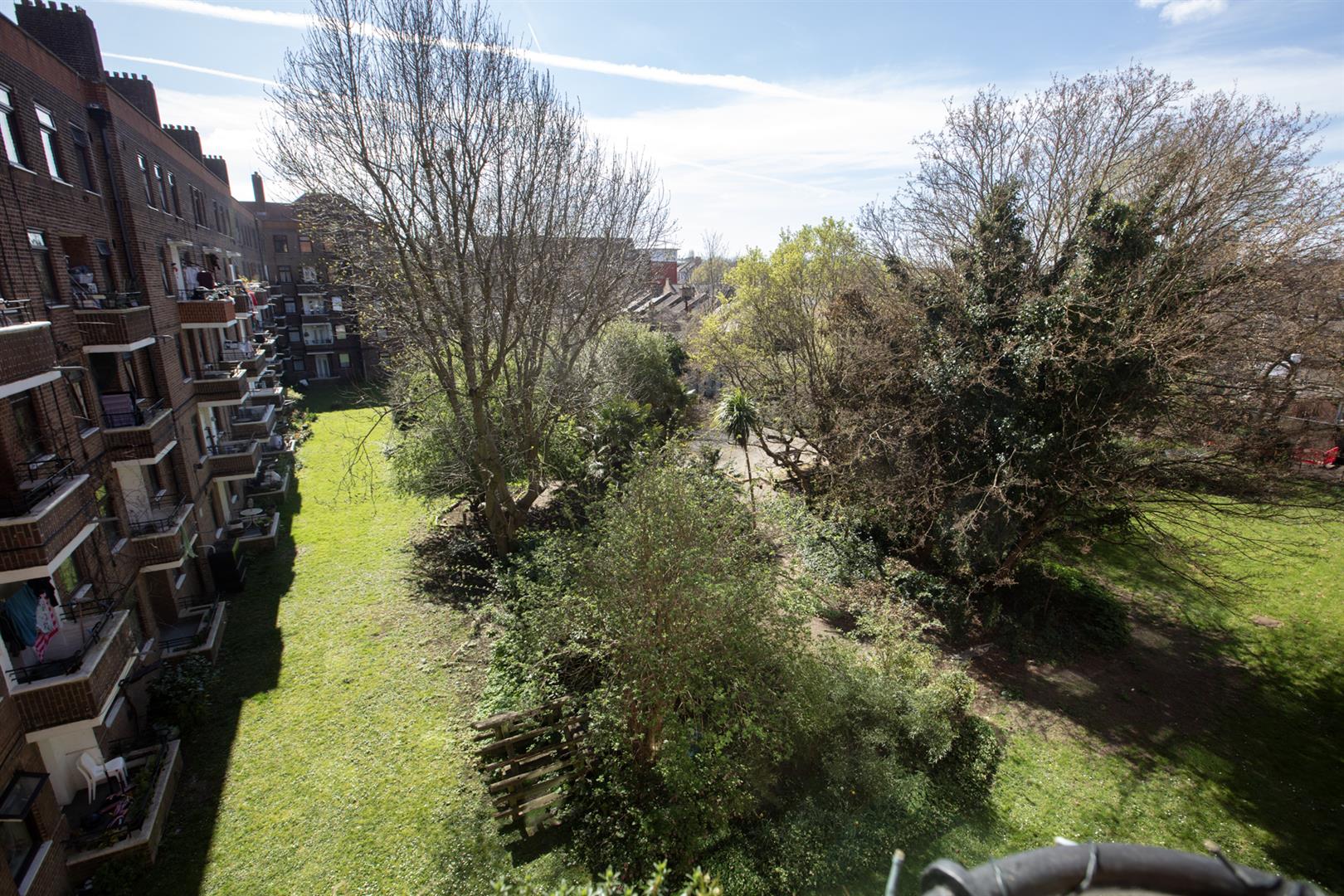 This fantastic two bedder enjoys a truly special setting - on the third floor of a well maintained block that boasts a most impressive mature and leafy community setting. The building has lovely curved balconies and arched bays reminiscent of the Art Deco period and fronts an expansive and lovingly presented communal garden with basket ball court, children's play area and community mural. Inside you find two nicely appointed bedrooms, an eat-in kitchen and insatiably bright reception that opens to your south-facing balcony. This peers from a lofty position over the best of the communal gardens. With this light and lovely aspect you'll enjoy al-fresco dining throughout the milder months.