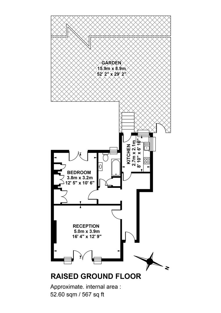 The impressively proportioned reception faces front with tall French doors and windows that supply oodles of light. There is plenty of space for lounging and entertaining. The double bedroom comes further along the hall and has ample fitted storage and some lovely leafy views. The bathroom sits next door with a modern white suite, airing cupboard, wood panelled bath and wooden panelling to dado level. A rear aspect frosted casement lets steam out and fresh air in. Last but not least comes a pleasant kitchen with space for dining and access to the private garden. There is a new gas boiler and double-glazing throughout. Outside there's a lush, 50ft private space for sun-baking, barbequing and veg growing. In addition there is garden side access, storage for tools and an outdoor tap.