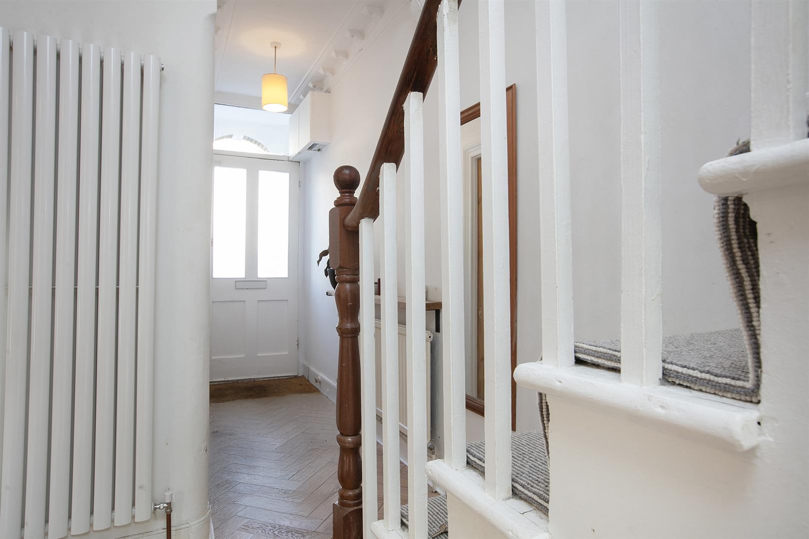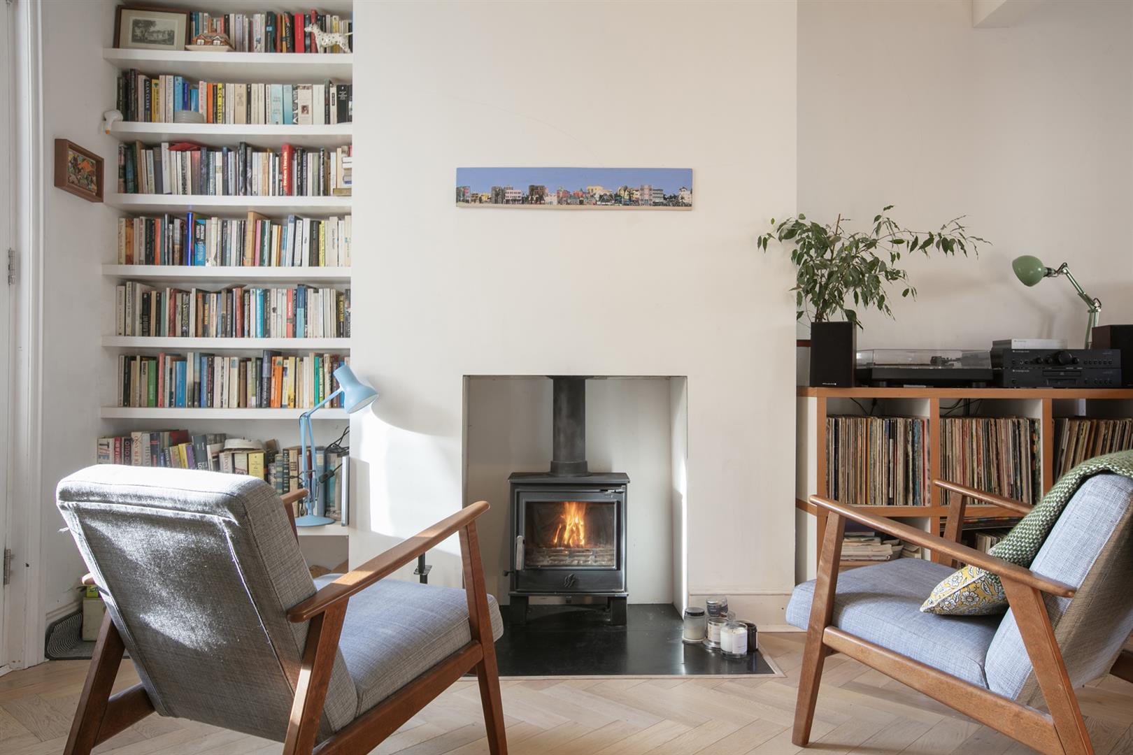 Much-requested Choumert Road forms part of a magical collection of period streets: this leafy, mature and community-driven neighbourhood is bursting with creativity. Parking is never a problem with the residents' permit zone.There is a friendly WhatsApp group and seasonal neighbours' meet ups. Beautifully shaped privet hedging borders the property's front garden affording a sense of privacy (note the wooden bike shed with space for three bikes). The arched and recessed portico invites you through the period door with frosted oblong panes. Inside you're greeted with a bright hall with original cornicing and corbels and sublime 'Woodpecker' herringbone oak engineered flooring. This flows stylishly through the living space which runs open-plan past the original staircase to supply a notably spacious yet cosy feel. An Ecodesign log burner offers the ideal spot for lounging. This is next to French doors which lead rear to the garden. The front section of the living space boasts an original feature fireplace and some magically restored original wooden vertical shutters to the sash bay window. Your Victorian credentials are enhanced yet further by twin original ceiling roses.