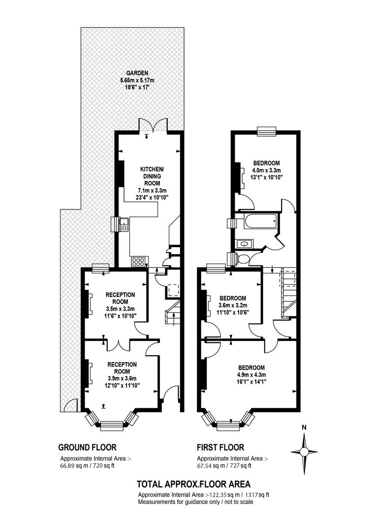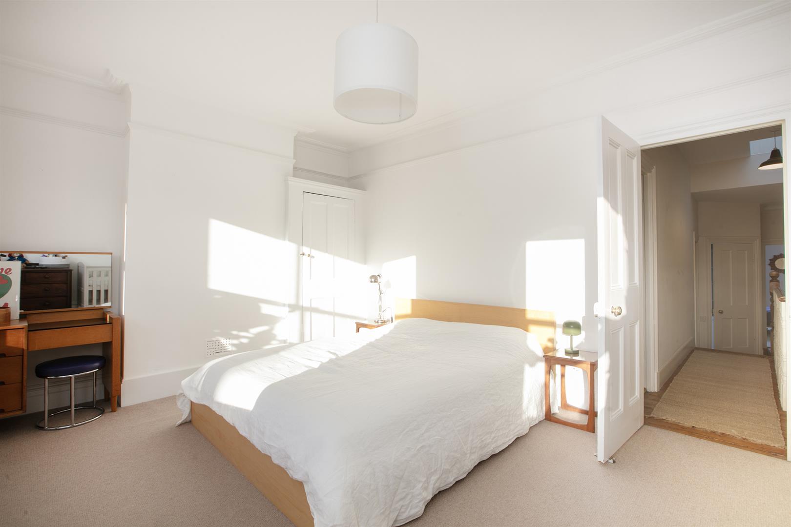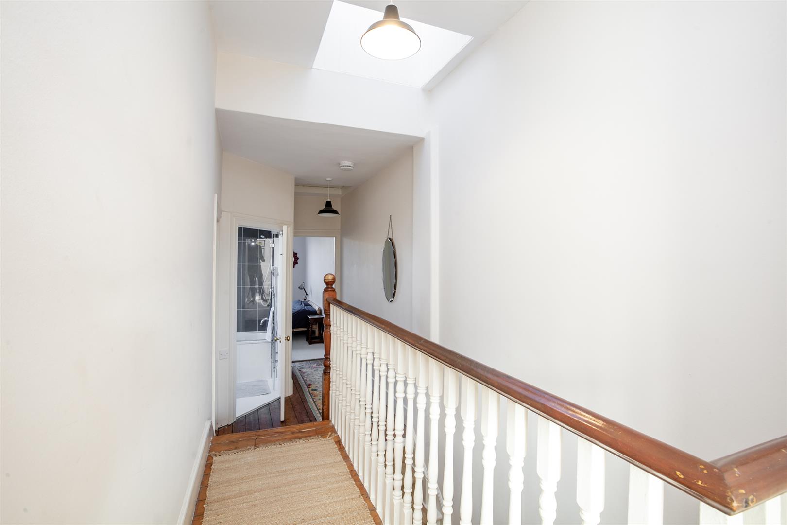 Back inside you ascend upward via an original staircase which dons an original decorative Newel post and handrail, white treads and risers and a stunning hard-wearing runner. The split-level landing gives an impressive sense of width and height with tonnes of hanging space for your larger works of art. A skylight ensures noteworthy airiness. The front-facing master bedroom sprawls to full-width with a wide canted bay and additional sash window. There's such a lovely period streetscape to enjoy below - it's a bright pleasant space. Bedroom two is a fine-sized double with more tasteful floor coverings, original storage and additional mirrored cabients. There's also a charming feature fireplace with gorgeous tiled hearth. The bathroom and wc are separated for peaceful morning traffic and the third double bedroom is a reassuringly generous rear-facing room with another show-stopping feature fireplace.