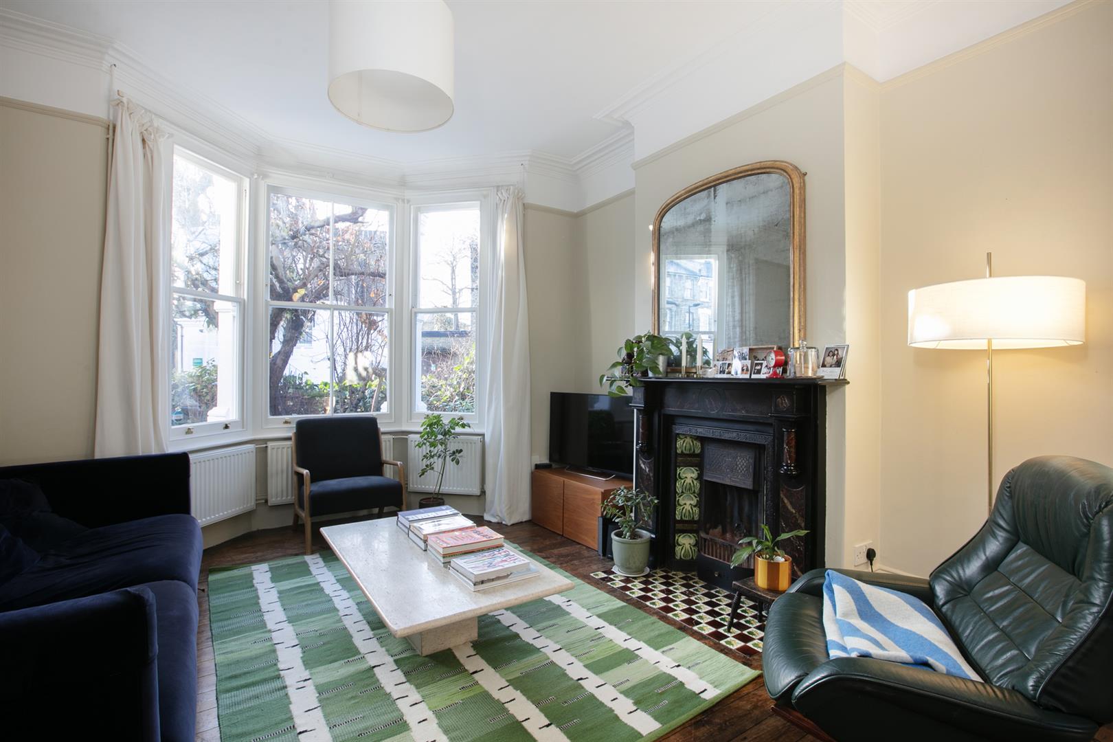 Boasting a semi-detached corner position, the property sits back from the peaceful street behind a mature garden with wrought iron gate and mature tree. As it's a no-through road, you'll enjoy a quiet, low-traffic environment. An arched recessed portico leads you to an exquisite original door with a triptych of mottled glass windows. Inside you meet a welcoming hall with high ceilings and beautifully maintained corbels. The double reception sits to the left and is separated centrally by double original doors. To the front you enjoy a wide, canted bay window with leafy views, a ceiling rose, picture rails and cornicing. The rear room peeks down toward the garden. and both ends of the room have sublime matching period feature fireplaces. You find the kitchen/diner sitting at the end of the hall with plenty of modern cabinetry. There's a six ring gas range, integrated dishwasher, integrated fridge/freezer and washing machine. Quartz counters run gracefully over the breakfast bar which supplies additional dining space. Abundant space for a a large dining table precedes French doors which open to your leafy and pretty rear garden.