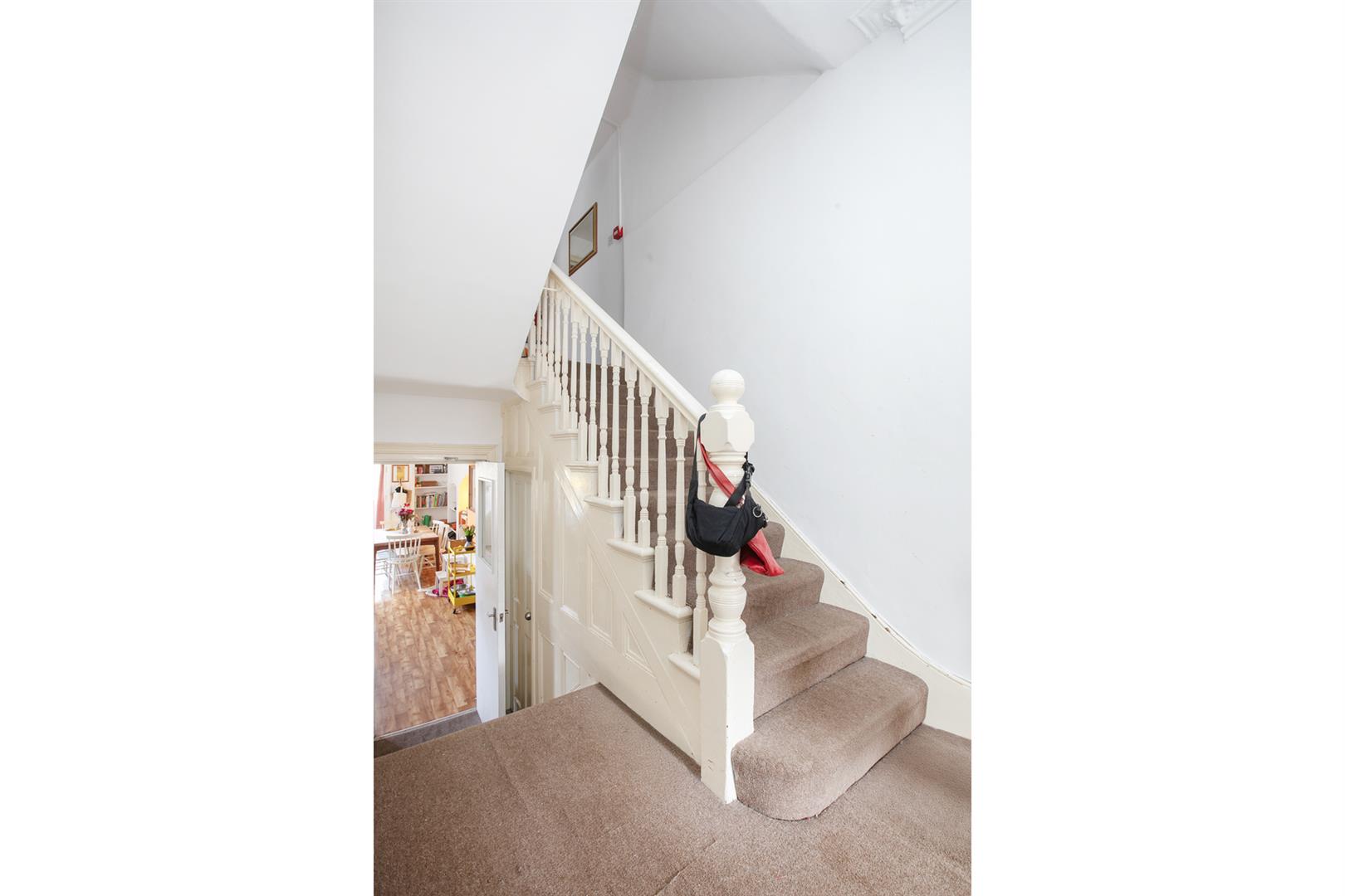 Back inside, ascend to the first return to find a lovely rear-facing double bedroom with ornate feature fireplace and access to that rear-facing balcony. From here you can really enjoy the surrounding mature leafiness. There's a neat bathroom and separate wc completing this level. Upward again to the first floor you find your bountiful master bedroom sprawling into the full width of the building. Two large windows supply plenty of light and there's another lovely feature fireplace. Bedroom three completes this level with a peaceful rear aspect. The second return has another generous bedroom next to a bathroom. A final ascent upward reveals two more bedrooms - a neat single and a large double. Both face front with a lovely streetscape.