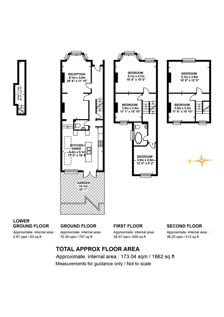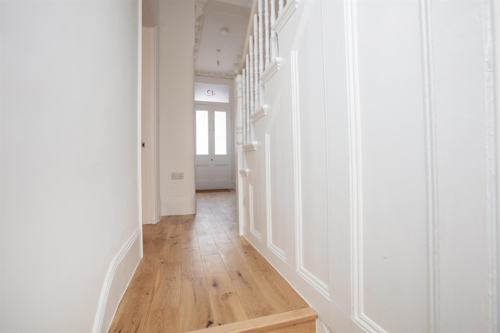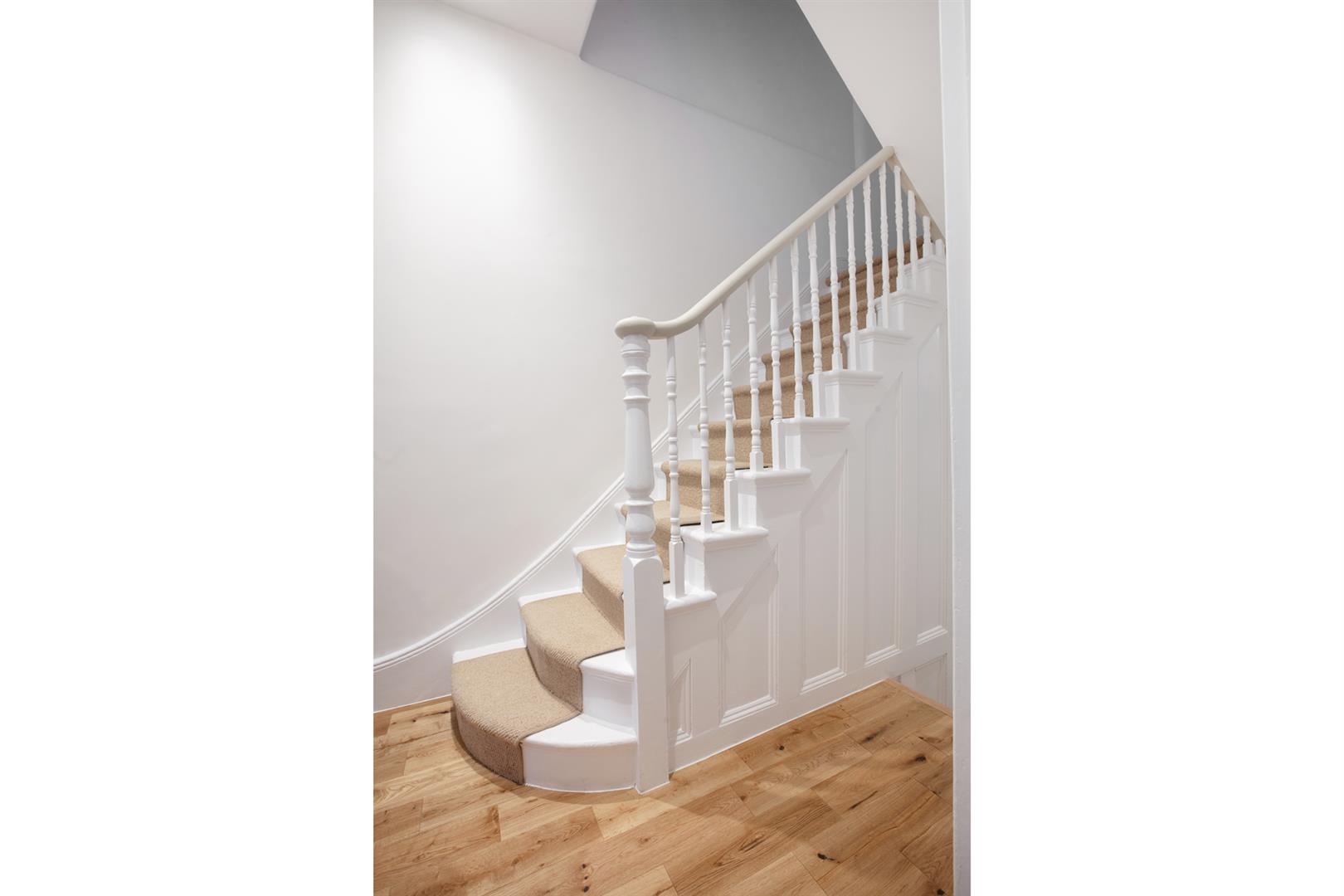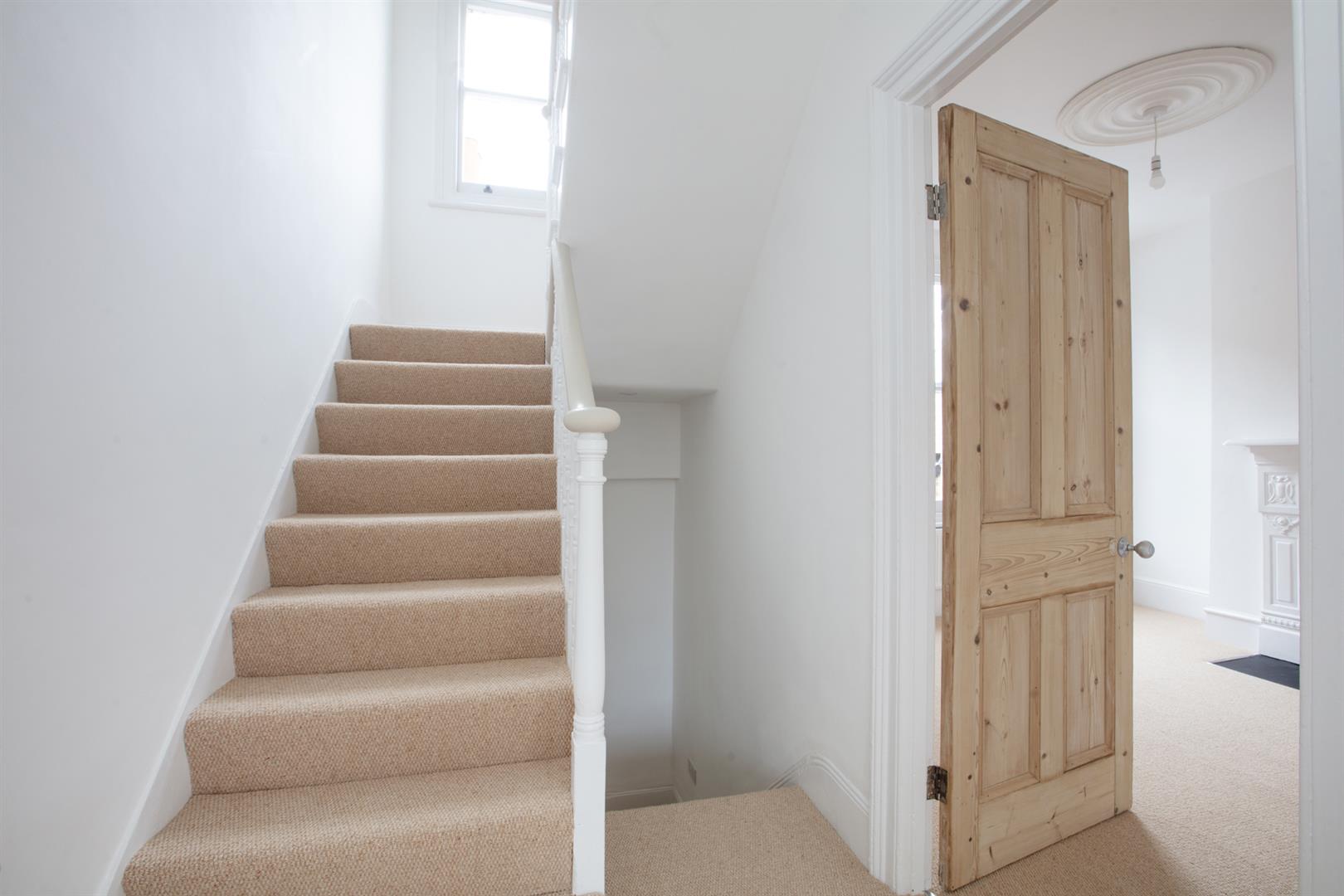 The kitchen/diner wraps back round to the hall to reveal a nifty laundry cupboard opposite the wc and next to cellar access. Heading up your pretty original staircase you meet a spacious and carpeted return with the first of your fabulous bedrooms. It's a rear-facing room with lofty garden views. Next to this is the bathroom which enjoys vaulted high ceilings, huge skylight and a pretty free standing bath. The master bedroom fronts the street into the bay and boasts a lovely feature fireplace. Bedroom has more garden views and another ornate feature fireplace. Upward to the second landing you find another huge front-facing double bedroom with carpeting and gently sloping eaves. Bedroom five, another carpeted double, has a period feature mantel and peaceful rear views.