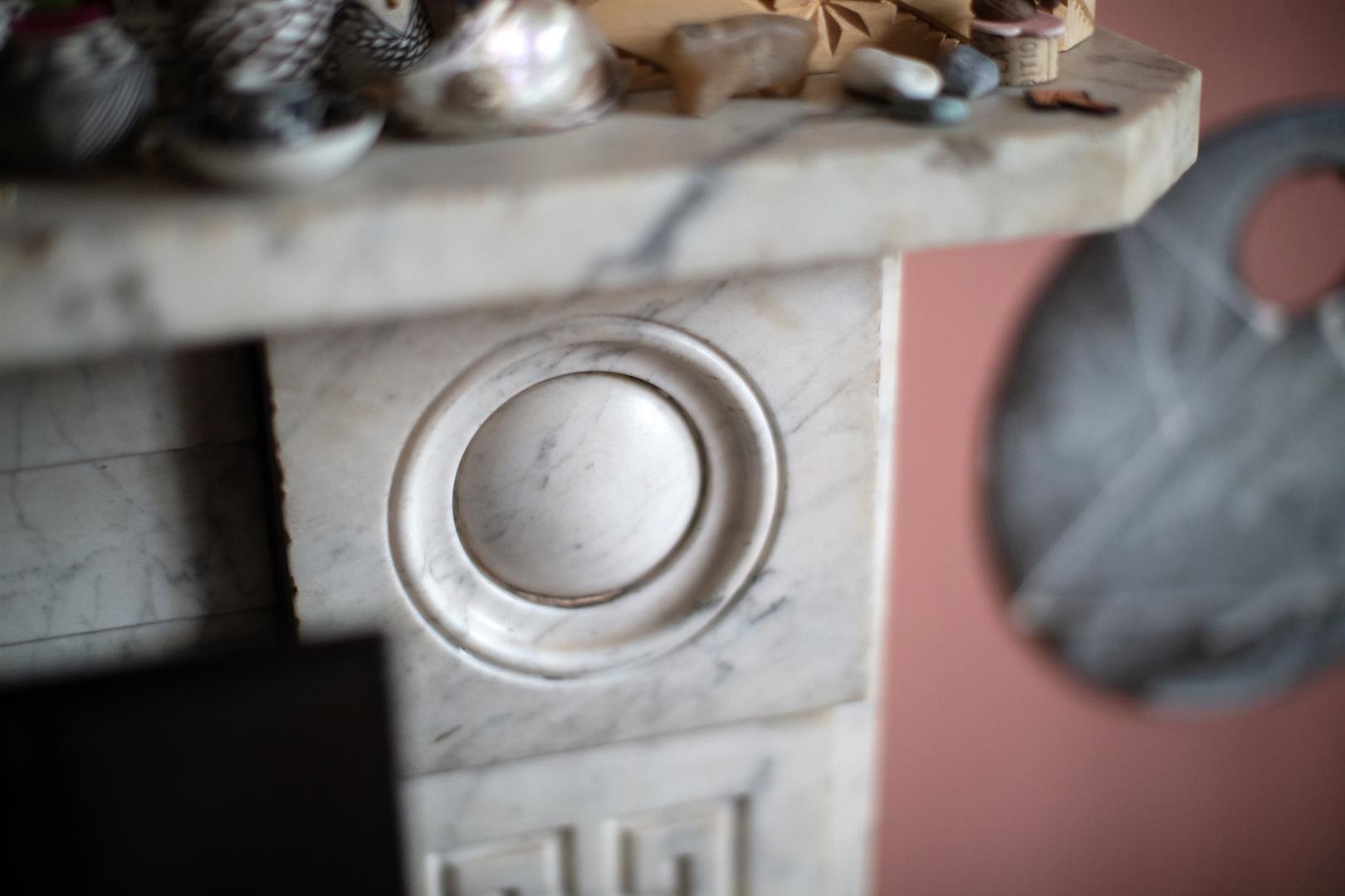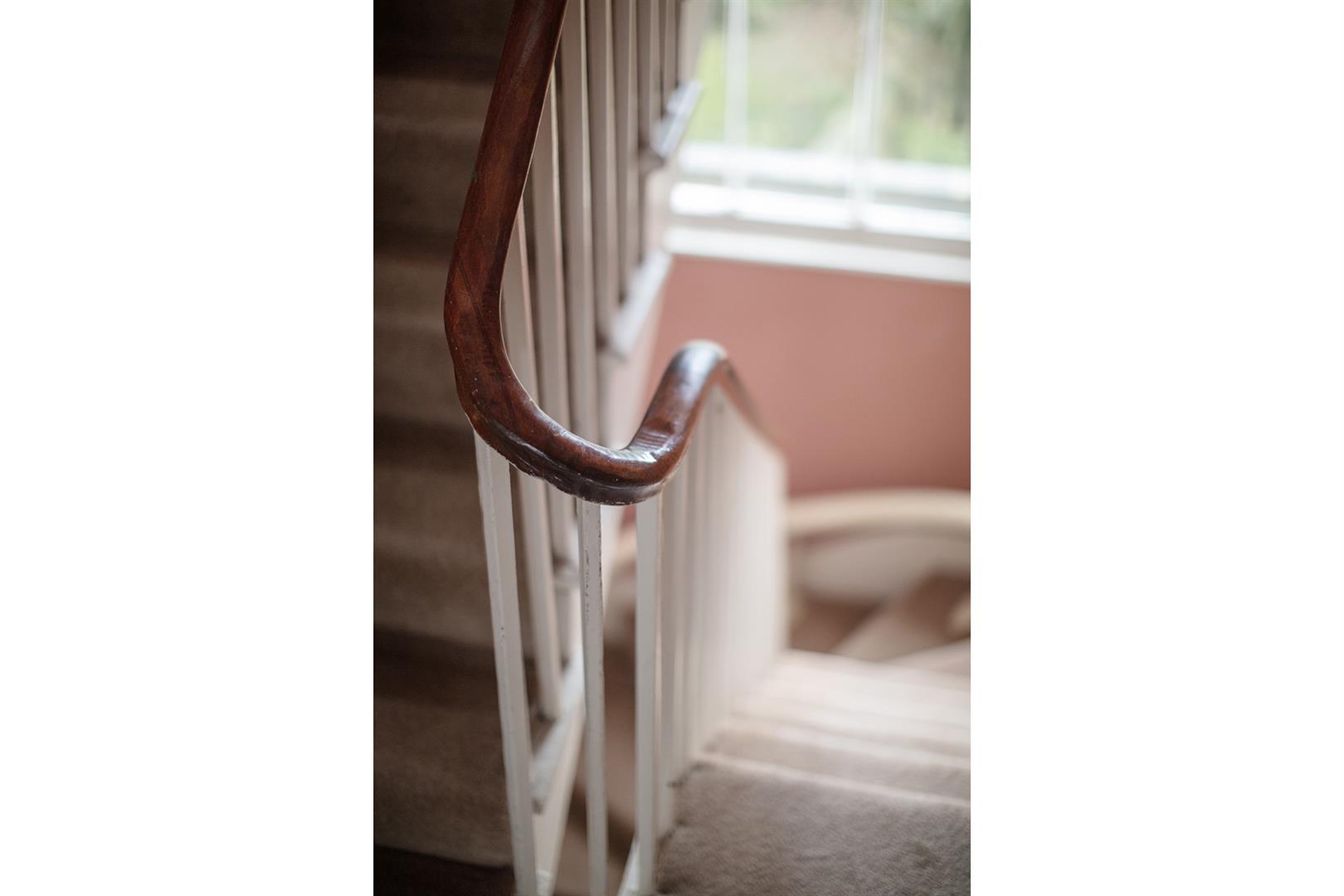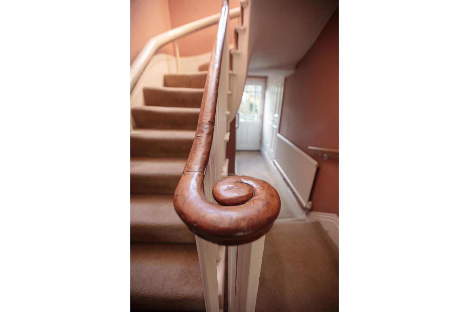 Back in the entrance hall you can pause to appreciate the fine original staircase with its charmingly curved original hardwood hand rail and original banisters. A rear-facing sash window floods the landing with light as you move up to the first floor piano nobile and enter a most impressive high ceilinged front facing room, currently an art studio (this house has nurtured creativity over recent years with an artist and a musician inspired to create their art there), which commands lovely views over the Grove through a duo of floor-to-ceiling windows with shutters and Juliette balconies. Boasting another feature mantel piece in marble, the space would make a fine drawing room or indeed a most-coveted master bedroom. An additional room adjoins to the rear, divided by period shutters for maximum flexibility.