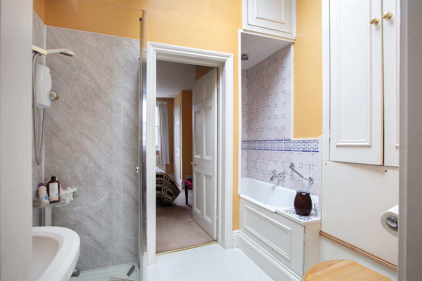 Heading to the upper landing you find another raised sash window illuminating the way to the top floor front-facing bedroom with lofty views across the stunning tree-top streetscape. There's a period feature fireplace, two fitted storage points and integrated wall lights. The rear double bedroom boasts another feature fireplace. The two top floor rooms each have access to a 'Jack & Gill' bathroom with both shower and bath and a vaulted ceiling with skylight.