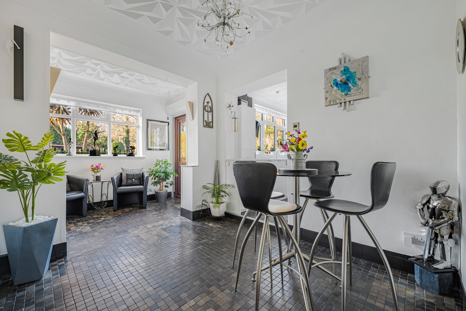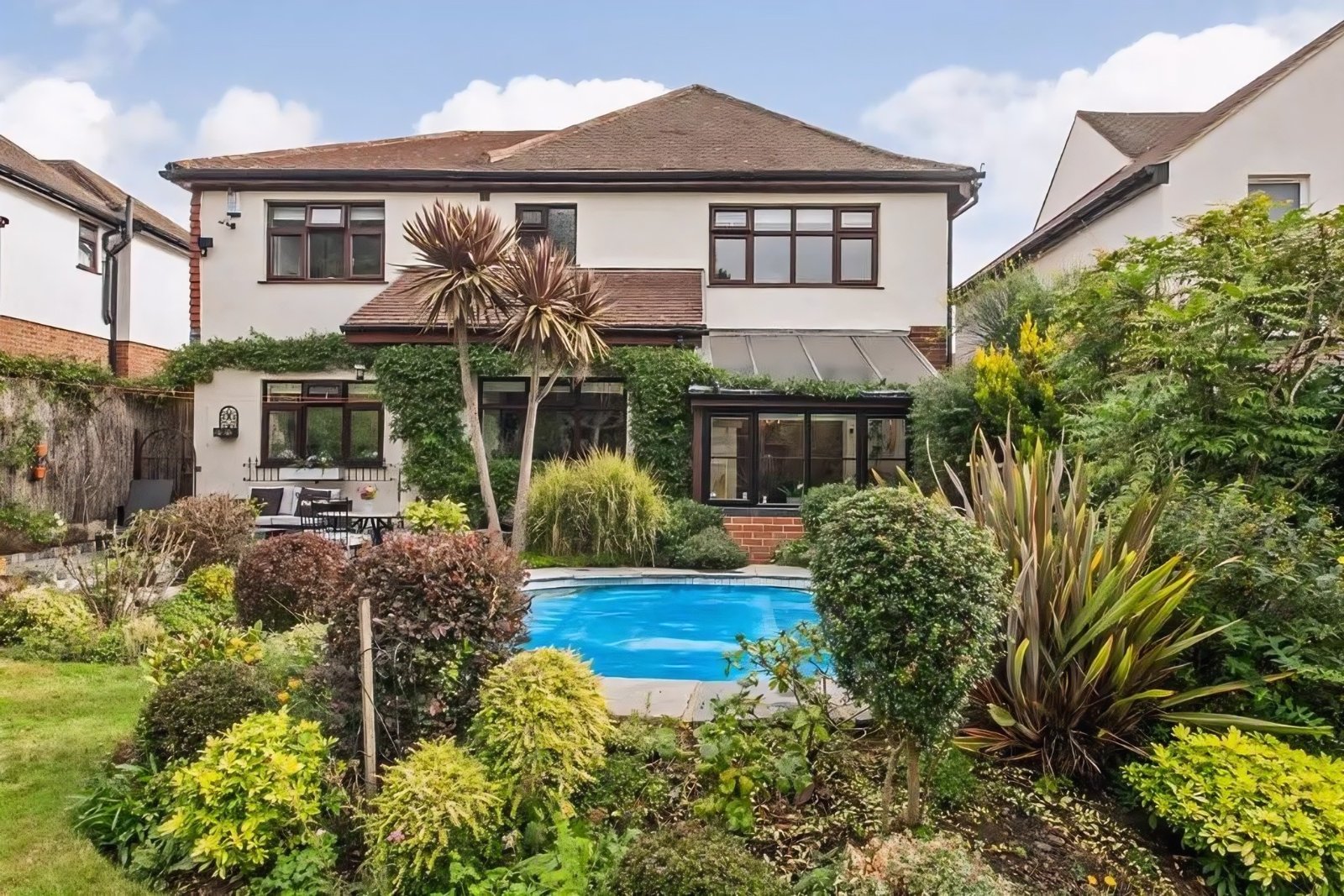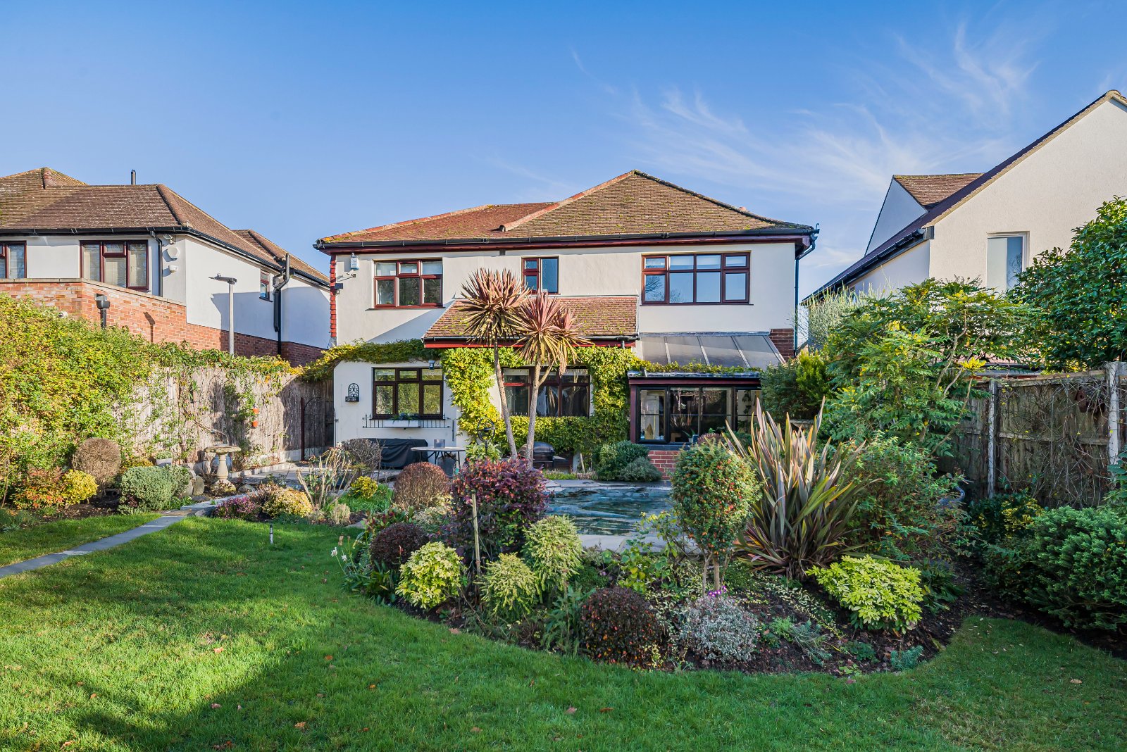 Externally, the property continues to impress with a beautifully maintained Westerly-facing rear garden backing directly onto a golf course, affording open views, a wonderful sense of privacy and the added benefit of a plunge pool — ideal for relaxation and entertaining during the warmer months. Further advantages include ample off-street parking and the benefit of no onward chain, allowing for a smooth and straightforward purchase.