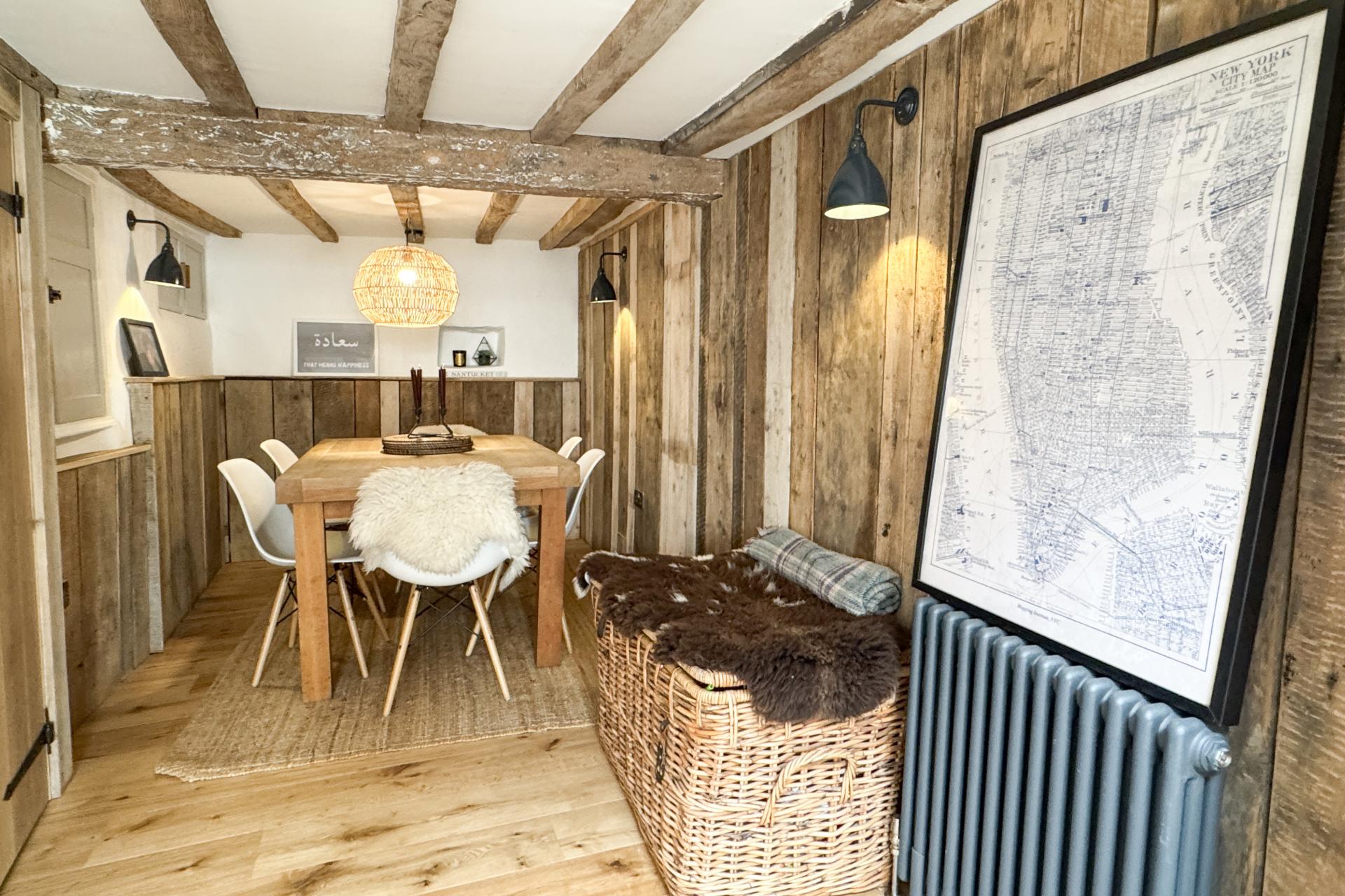 Blacksmiths is a stunning renovated Grade ll listed property, formerly the village Blacksmiths, this stunning period property has been extensively renovated to create a beautiful three/four bedroom home enjoying a prime position within the village. Originally dating back to 17th century, the property retains a multitude of original features, decorated with a neutral palette that compliments the beams and oak flooring. On entering the cottage, the entrance hall provides access to all the reception rooms with exposed stonework to the walls and exposed timbers. A contemporary kitchen to the rear of the cottage is fitted with a range of navy-blue matching wall and base units, with solid oak worktops and shelving units, oven, and halogen hob with extractor over, dishwasher and integrated refrigerator and has double glazed doors opening to the rear garden and paved area. The kitchen opens to an intimate wood panelled dining room for those that like to entertain. The two further reception rooms are to the front both with open fireplaces and exposed beams, the sitting room has an inglenook fireplace with a wood burning stove. To the first floor are the large master bedroom and two further double bedrooms. The bathroom is fitted with a modern white suite including a shower over bath and basin, set off by the beautiful bespoke floor of limestone laid in a herringbone design. The loft room is reached by a small staircase with storage in the eaves and a large bath creating a sumptuous space. Double wooden gates open to a low maintenance courtyard private garden. Oil Fired Central Heating Council Tax Band: E EPC: N/A Freehold