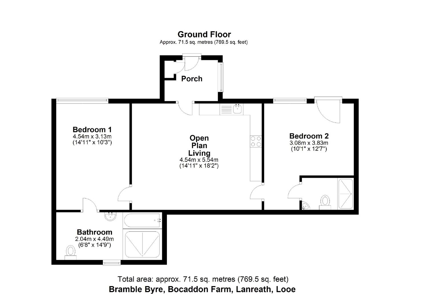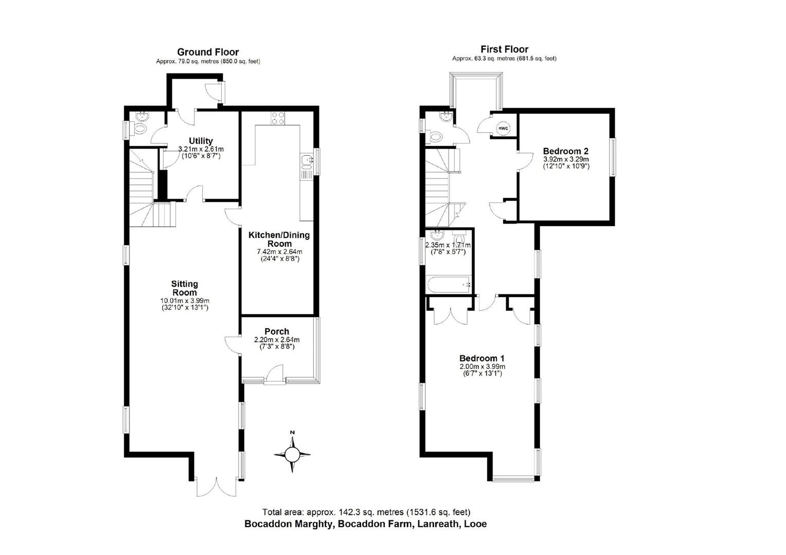 Bocaddon Marghty - A detached spacious and well presented 2 bedroom traditional barn conversion and briefly comprises: conservatory, kitchen / dining room, large sitting room with open fireplace, cloakroom, on the first floor: 2 large double bedroom rooms and a family bathroom.