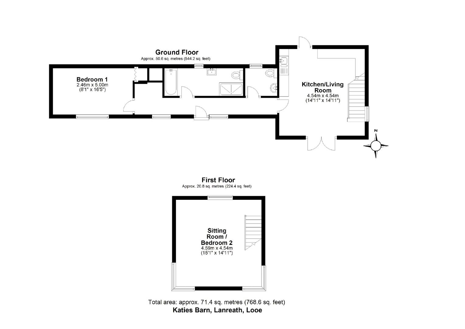 Katie's Cottage - A detached well presented converted traditional barn providing comfortable and flexible accommodation briefly comprising: Entrance hall, kitchen, sitting dining Room, Cloakroom, wet room with Shower and Bath and a double bedroom. On the first floor: Sitting room / bedroom 2. At the rear of the cottage is a large paved patio and lawned terrace