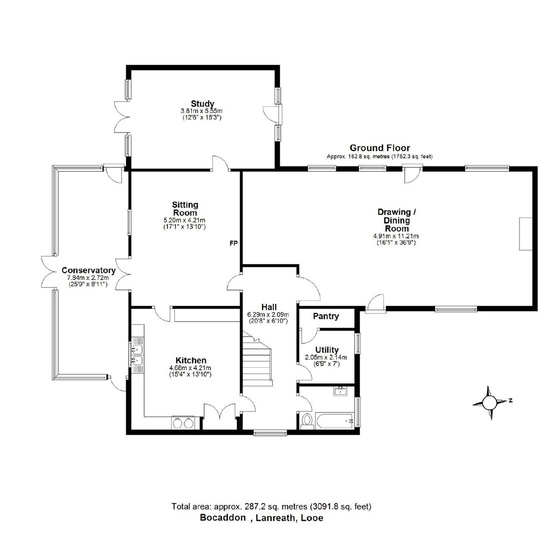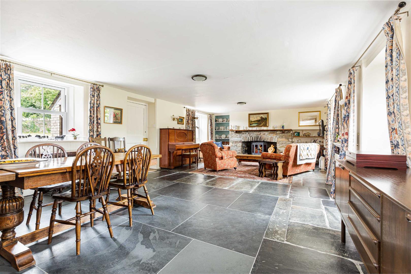 The house benefits from uPVC double glazing throughout. The accommodation briefly comprises: entrance porch, 11m dining / drawing room with open fire place and wood burner with slate flagstone floor. Inner Hall, Sitting Room, Study, Kitchen / Breakfast Room with oil fired Aga, Utility Room and Bathroom. On the First Floor: Large Landing, Master Bedroom en suite Shower Room, Single Bedroom, Double Bedroom with en suite Bath / Shower Room, Family Bathroom and Double Bedroom with en suite Bath / Shower Room.