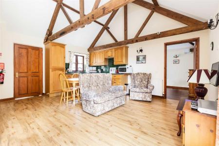 The accommodation briefly comprises: Entrance Porch with slate tiled floor, Kitchen/ Sitting / Dining room vaulted ceiling with exposed A' frames and beams. Double Bedroom with en suite wet room with bath and shower. Twin Bedroom with en suite shower wet room.