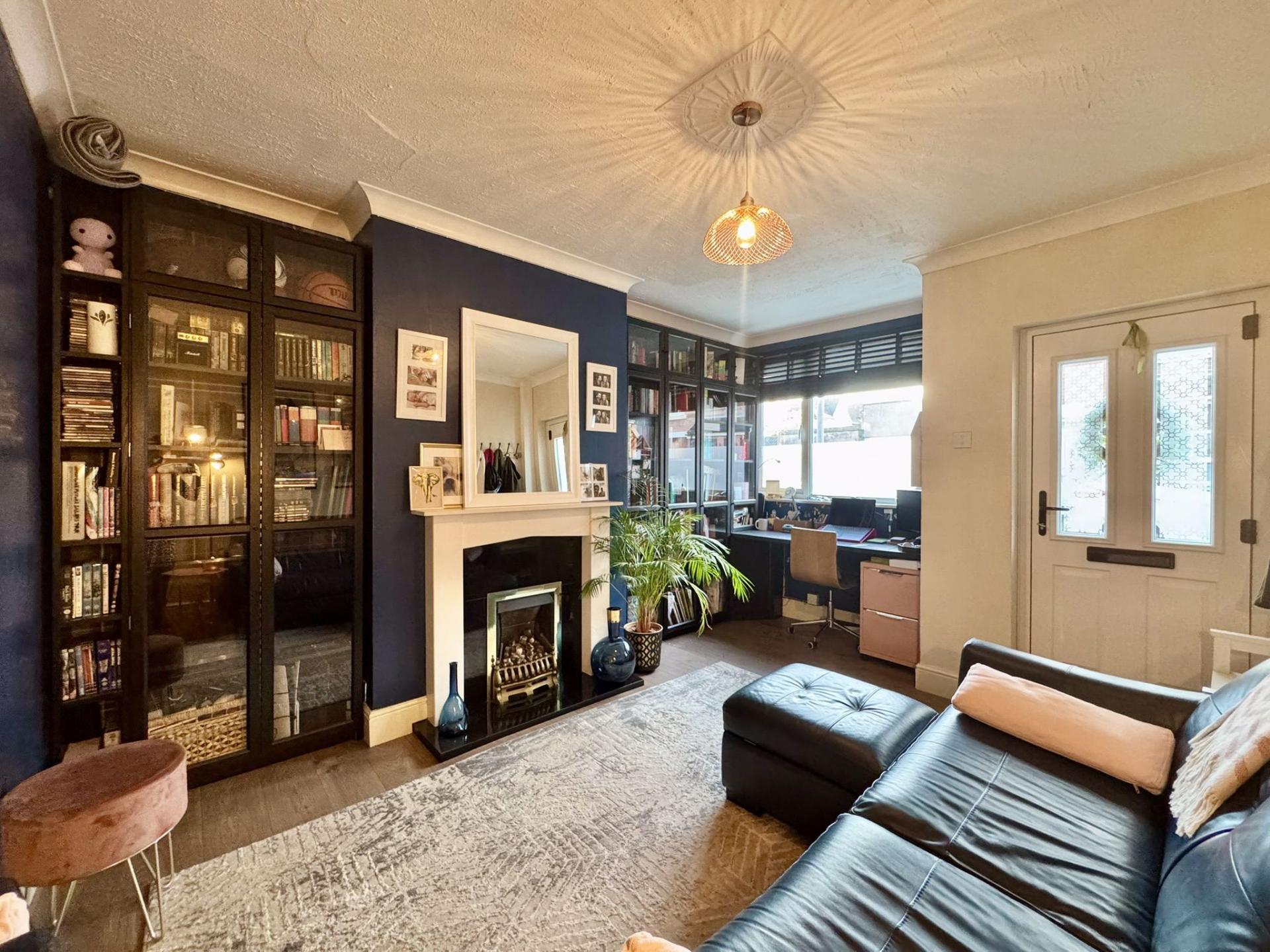 Bay uPVC window to the front elevation, composite door to the front elevation, feature fireplace and a radiator. The lounge also benefits from fitted display cabinet and desk.