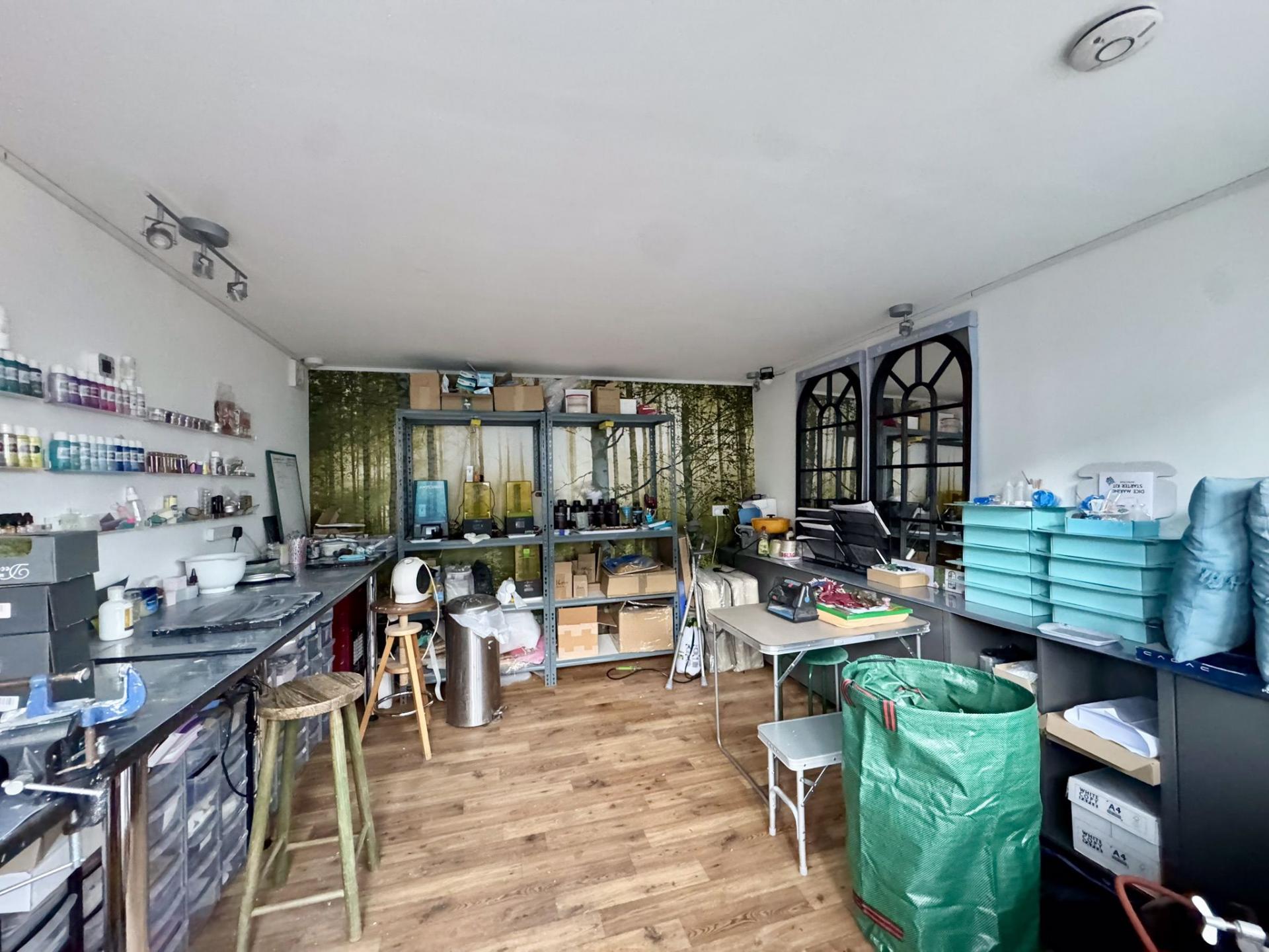Currently being used as a work shop. Timber frame with uPVC double doors to the front elevation, power and lighting
