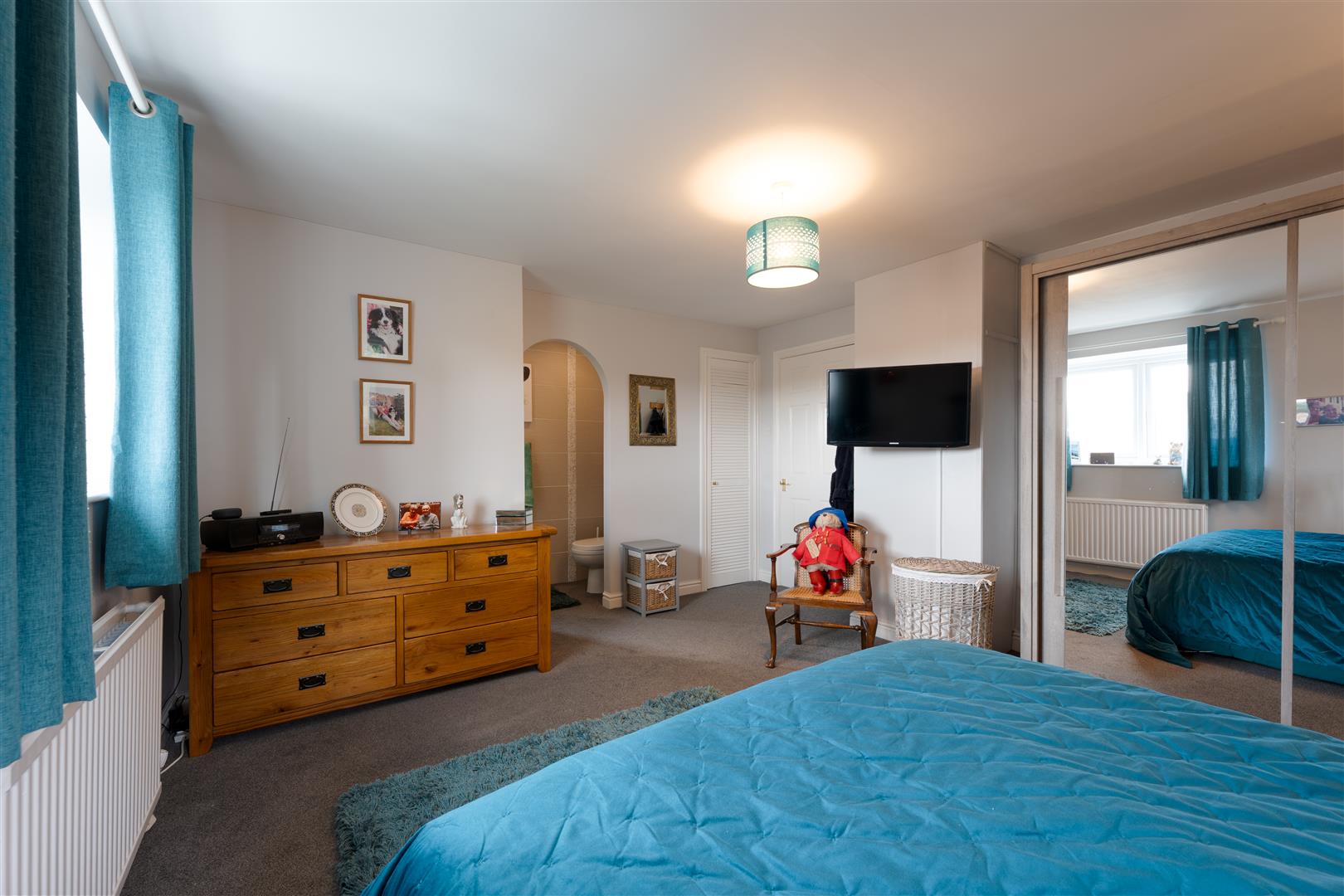 Bedroom 1 - 3.92m x 4.48m (12'10" x 14'8") - Fitted carpet, radiator, fitted mirrored wardrobes, cupboard housing boiler, UPVC double glazed windows to front and side aspect.