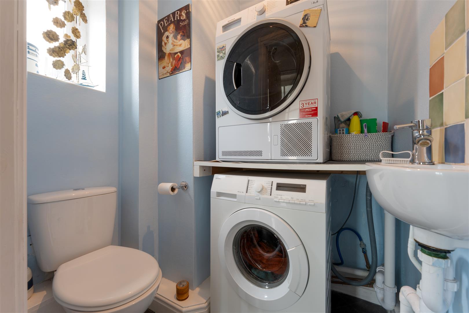 Cloakroom - Vinyl flooring, radiator, wash basin, toilet, plumbing for washing machine, space for dryer, UPVC double glazed window to side aspect.