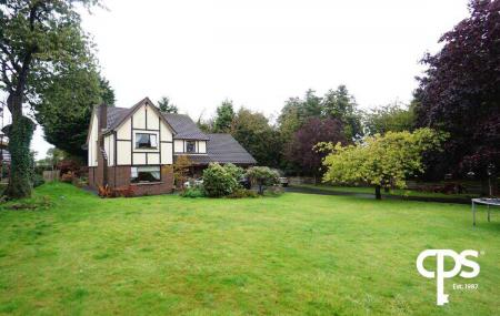 Front enclosed garden in lawn, tarmac driveway with ample car parking leading to garage.