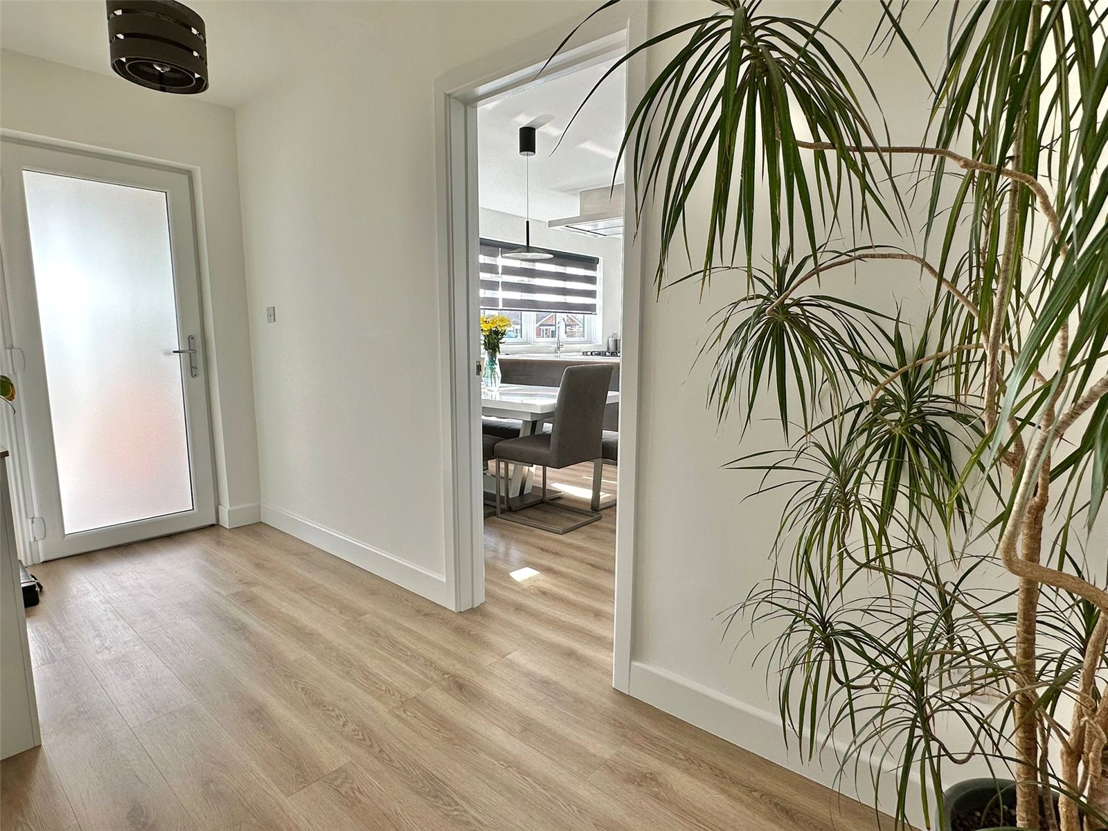 Composite front door with adjacent UPVC double glazed side screens and windows leading to: