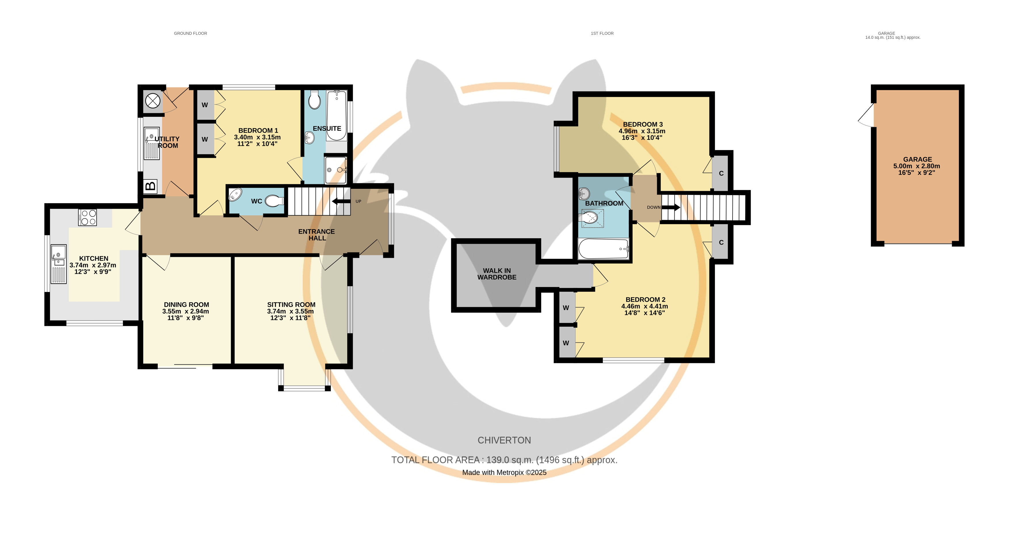 A downstairs cloakroom and a downstairs bedroom which has built-in wardrobes and a good size ensuite with both a shower cubicle and a bath complete the ground floor. While the first floor has the main bathroom and two further bedrooms, both good sized rooms with one also having a walk in wardrobe/dressing room.