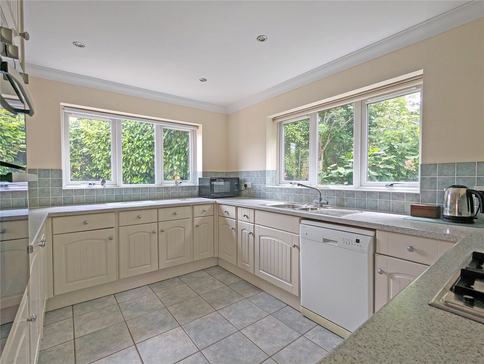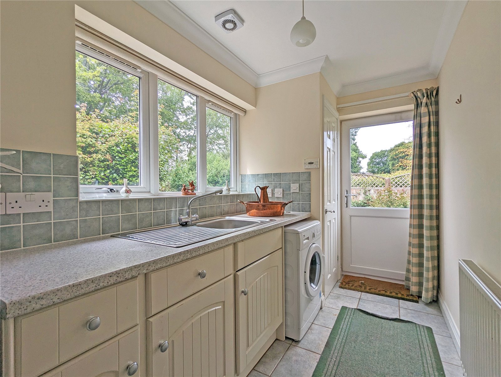 There is a separate utility with storage cupboards beneath work surface, with space and plumbing for a washing machine.