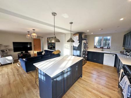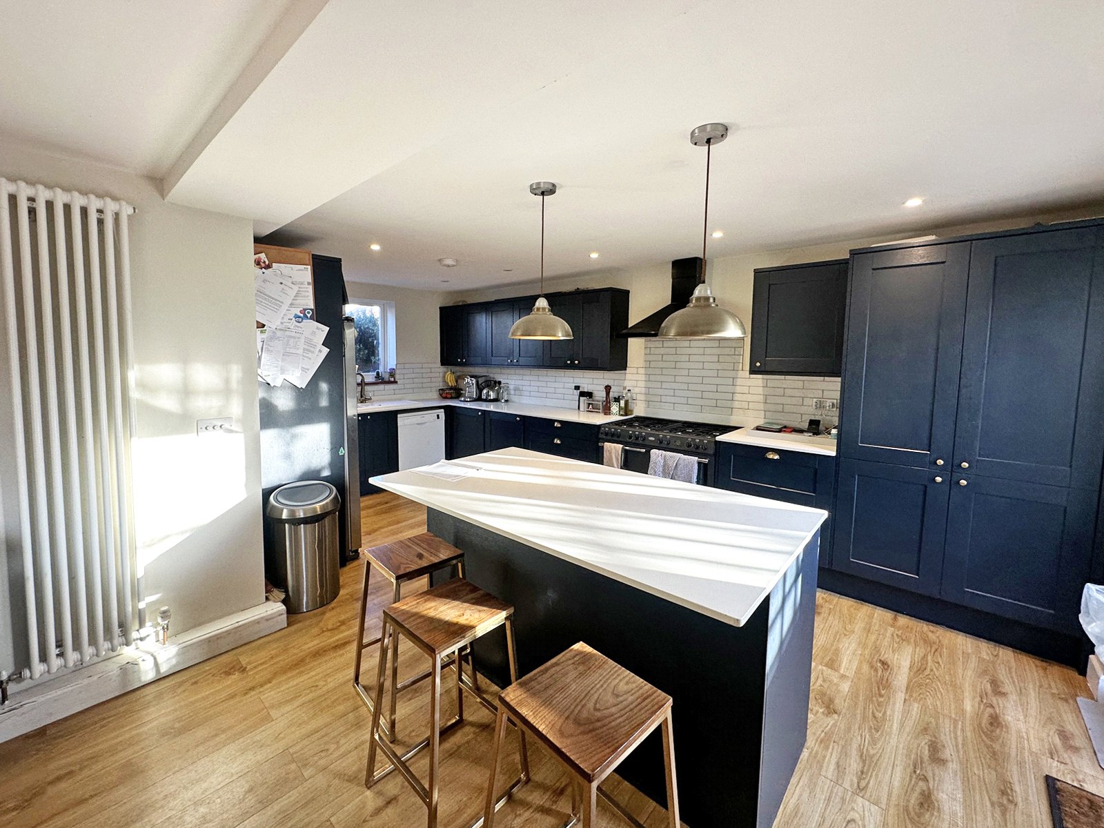 The property’s standout feature is the expansive open-plan living area created by a full-width rear extension. Beautifully designed and filled with natural light, this space combines functionality with contemporary style.