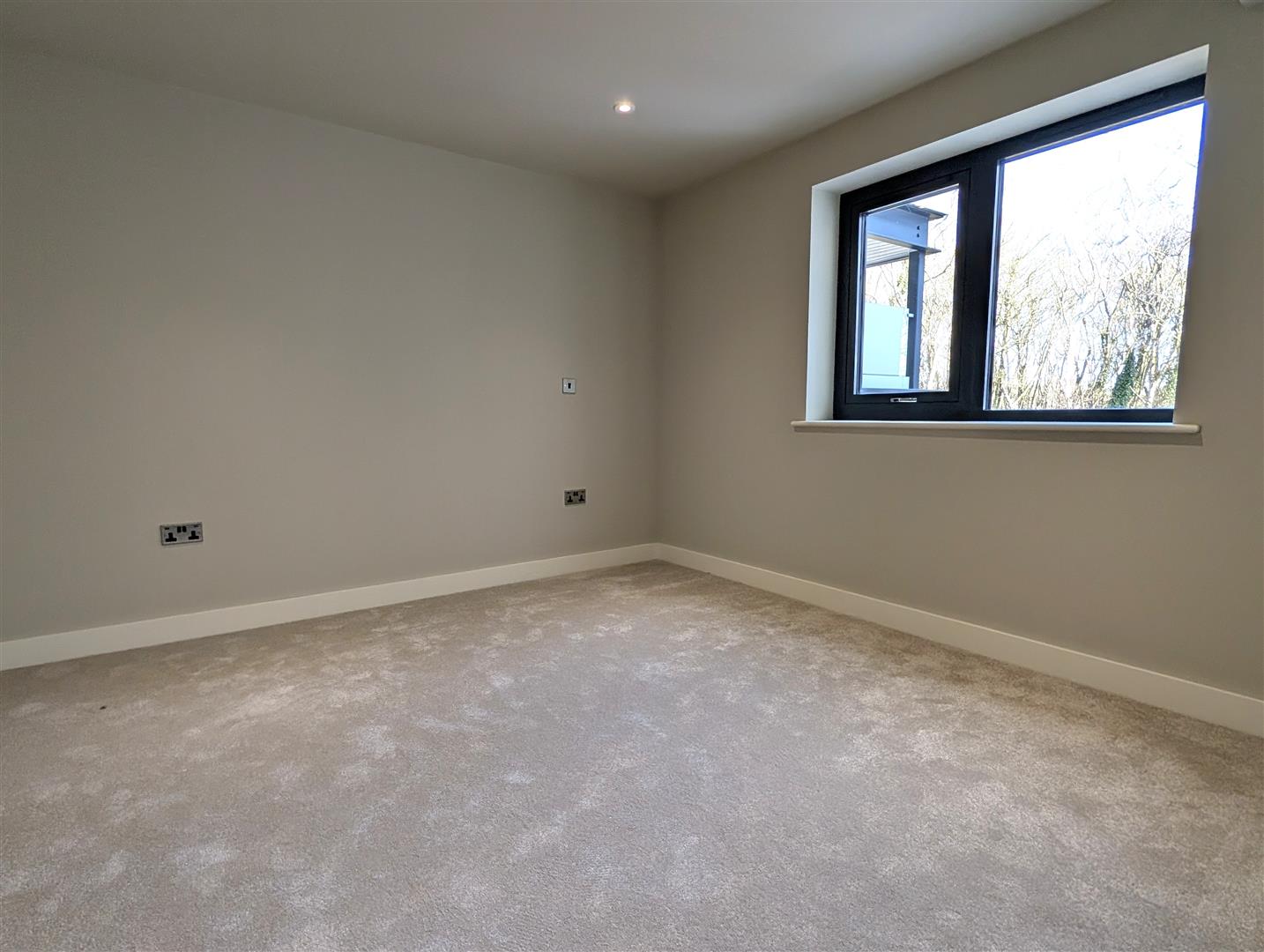 Contemporary elegant skirting and architraves finished in hard wearing warm white emulsion