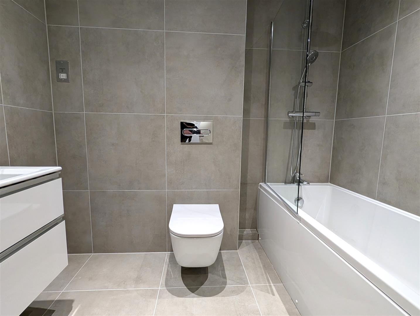 Bathroom and en-suite flooring and walls in matching luxury muted porcelain tiles