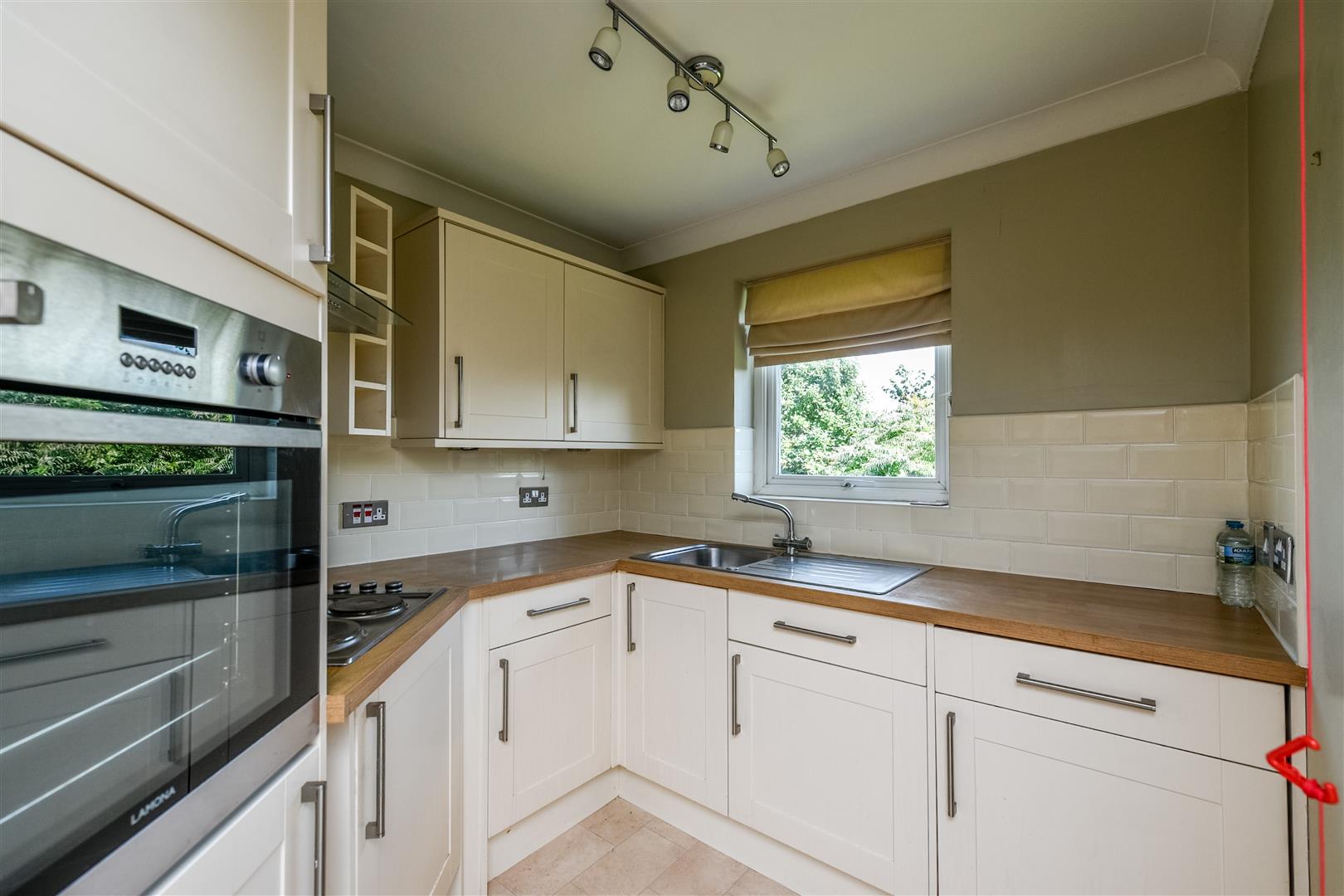 Kitchen - 8' 6'' maximum x 7' 7'' (2.59m maximum x 2.32m) - stainless steel sink unit with drainer, base and drawer units with worktop surfaces over, matching wall units, integrated oven, hob, washing machine and fridge, midway tiling, double glazed window