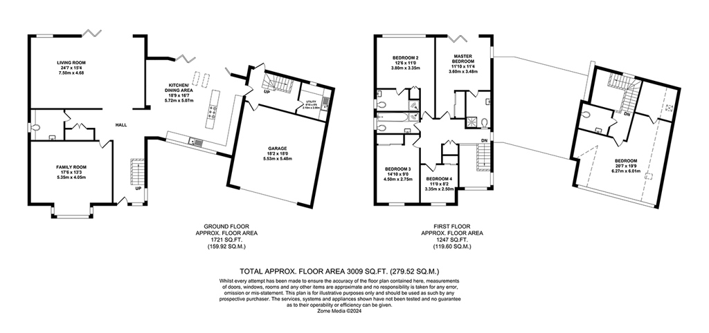 To the front of the property is a living room, which is flooded with light from the large bay window, whilst to the rear of the property, a spacious family/living room extending to 24'7'' overlooks the rear garden, which is accessed by large bi-fold doors. The double aspect kitchen/dining room is located to the middle of the house and features an impressive vaulted ceiling, creating a voluminous and bright hub for the home. The kitchen features a range of bespoke fitted cabinetry, a full range of appliances and dining area. The downstairs cloakroom would not be out of place in a 5* boutique hotel and there is a useful utility room with separate access into the garden. The double garage can also be accessed directly from a second lobby area.