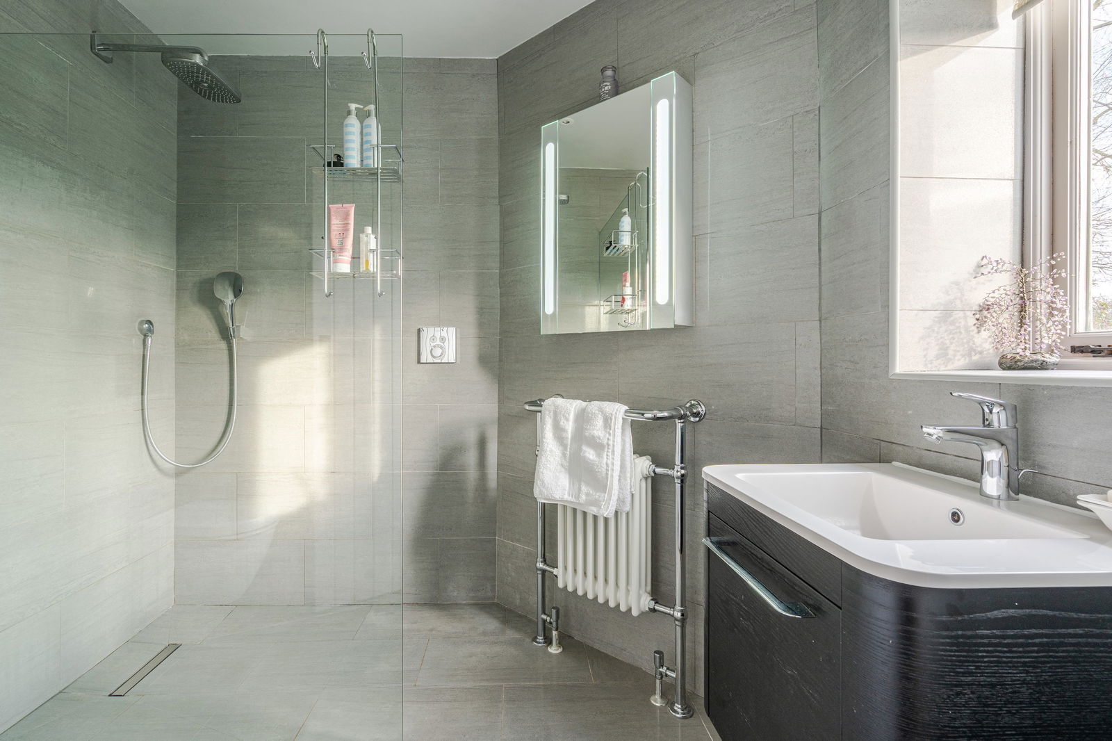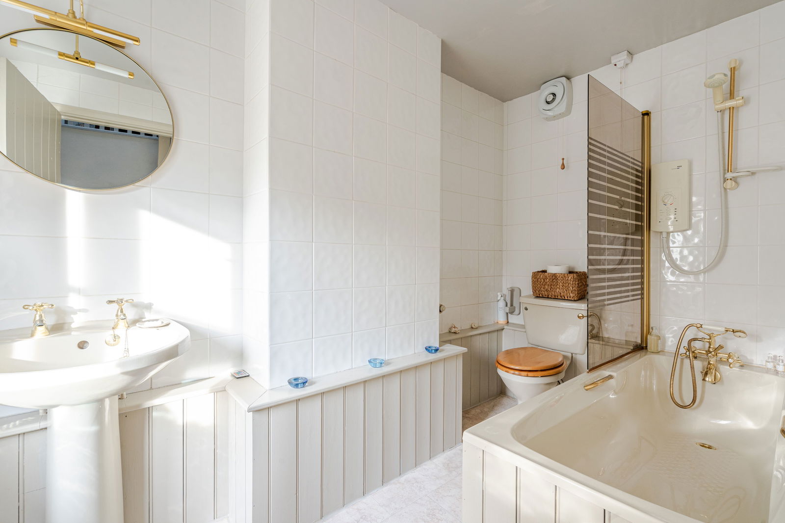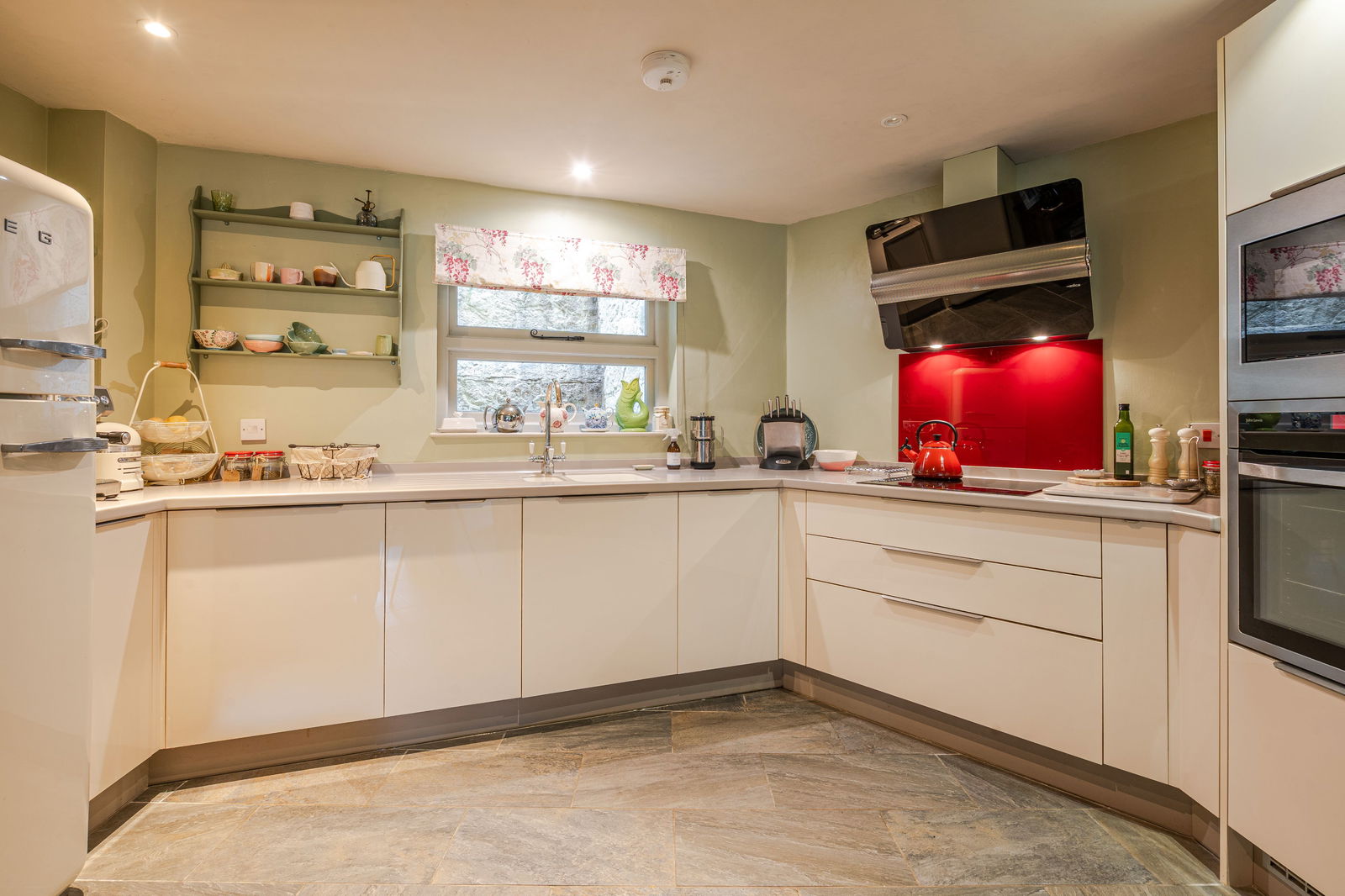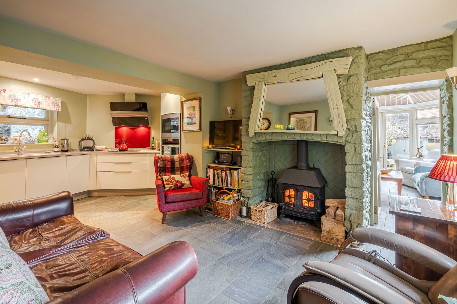 The ground floor opens to a dining hall with stairs up to the first floor and a utility/WC off the rear. The principal living area comprises an open plan kitchen/living room with a cosy wood-burning stove and modern fitted kitchen with integrated appliances. Adjoining the living room is a garden room with views across the garden. The entire ground floor is warmed by underfloor heating. The principal bedroom suite is located on the first floor comprising a double bedroom, walk-in dressing room, and en-suite shower room with underfloor heating. Across the hall there is a family bathroom while the top floor consists of a bright and airy attic bedroom.