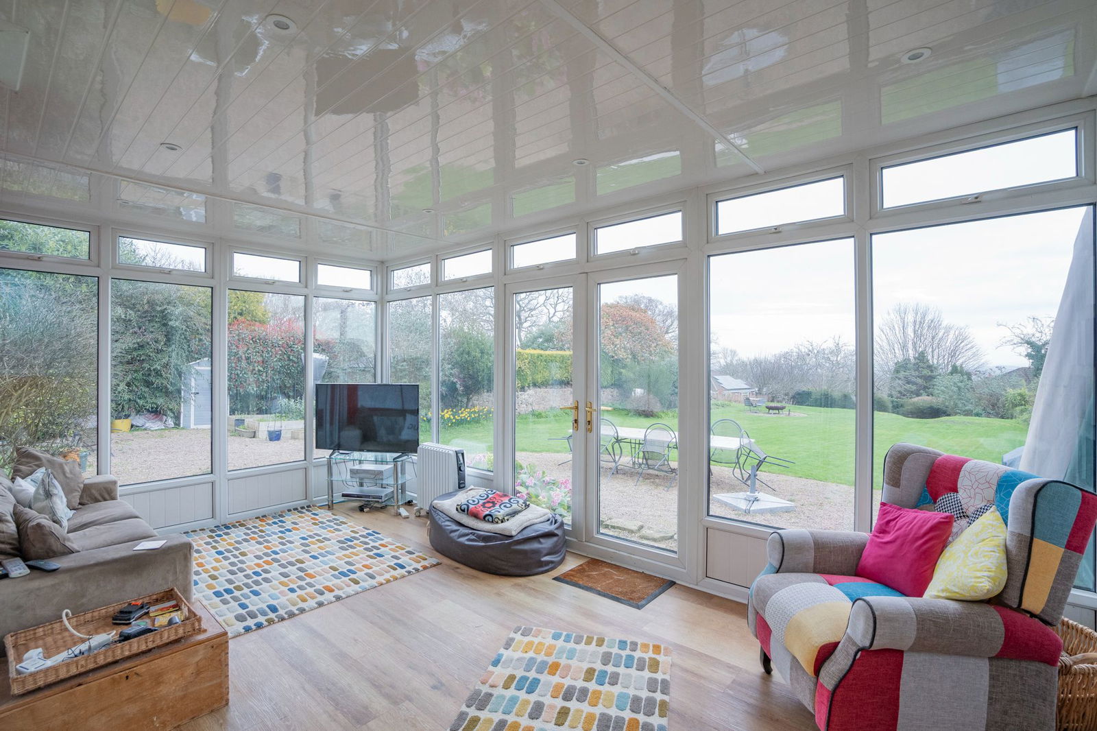 The dining area provides space for a large dining table and a large sash window.  Double doors from the kitchen diner open to the Conservatory that has a glazed surround and French doors that open to the garden, perfect for entertaining, both the conservatory and kitchen have skylights that provide plenty of natural light.  Off the conservatory is a Utility Room with space and plumbing for washing machine and further white goods.  An additional reception room could be used as an occasional bedroom with beautifully tiled, patterned floor that flows through to a Bathroom with WC, pedestal wash hand basin and panelled bath.  This area could lend itself to someone looking for independent living.