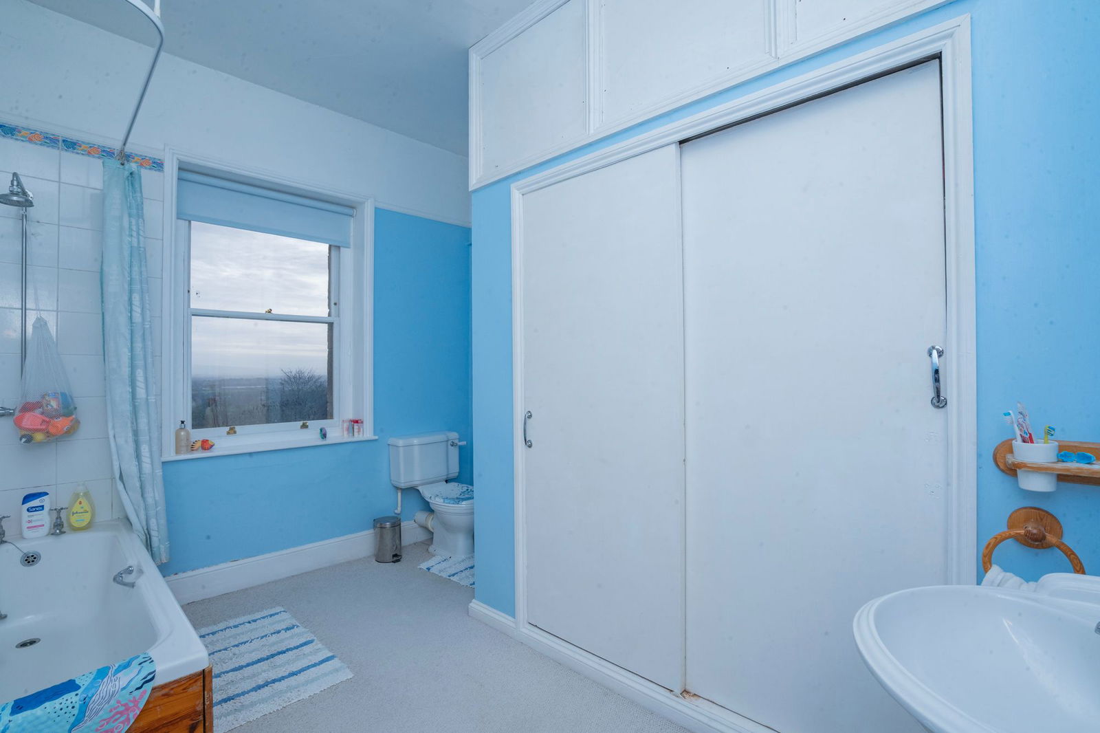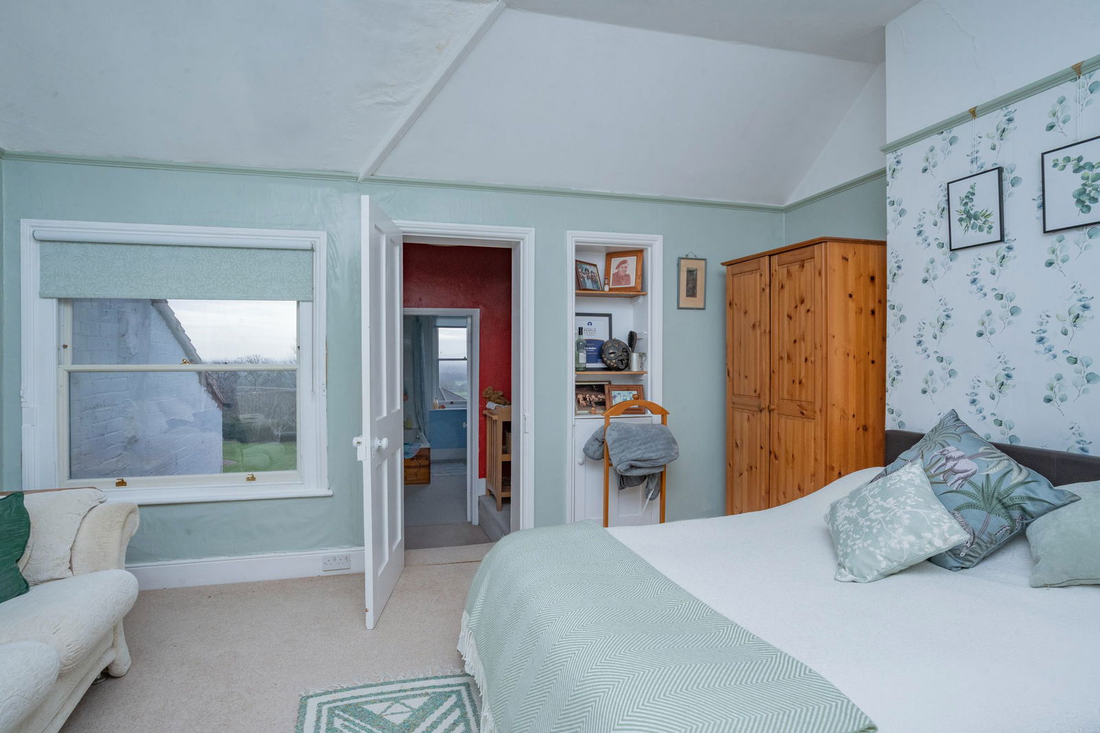On the first floor there is a landing with large sash window to side overlooking fields with an open aspect with doors to all bedrooms.  The two bedrooms to the front of the property have wonderful views to the hills and the period features continue with high ceilings.  One bedroom has a bank of built in wardrobes.   The main bedroom sits to the rear of the house and looks out over the garden and the Severn Valley beyond and has a built in wardrobe to recess and door that opens to a dressing room and En-suite Bathroom  with Airing cupboard.  The fourth bedrooms has space for a double bed and has a sash window to side.   A family shower room is accessed through an archway.  Walk-in shower cubicle, pedestal wash and basin, low level WC and bidet.