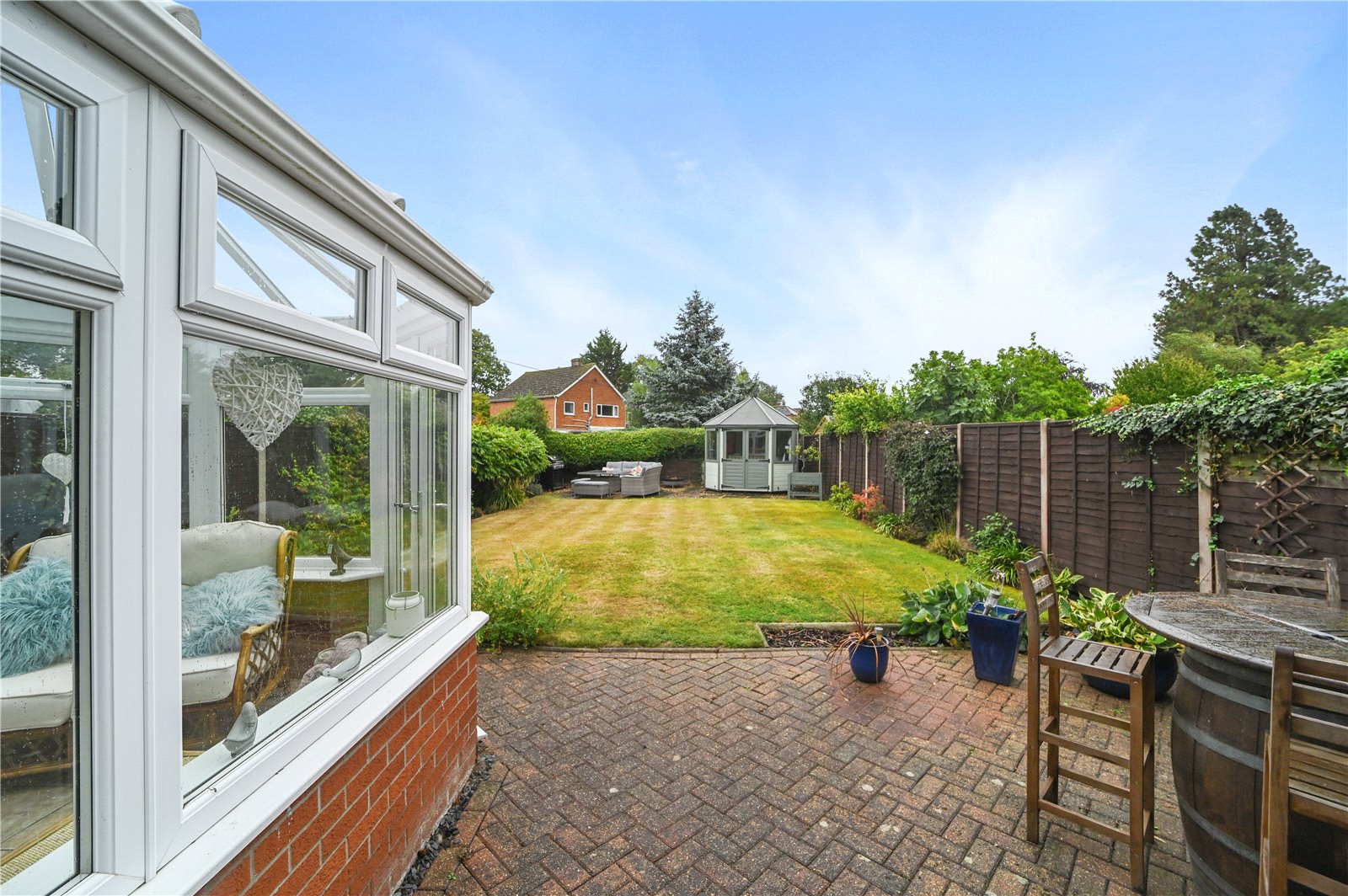 To the front of the property is a block-paved driveway providing ample off-road parking and access to the garage. A gated side access leads to the rear garden, which is a particular feature of the home - mainly laid to lawn and enjoying a good degree of privacy. A paved patio directly outside the house offers space for outdoor dining, while a second seating area with a summerhouse is positioned at the far end, ideal for entertaining or relaxing. The garden is enclosed by fencing and mature planting, with borders providing seasonal interest.