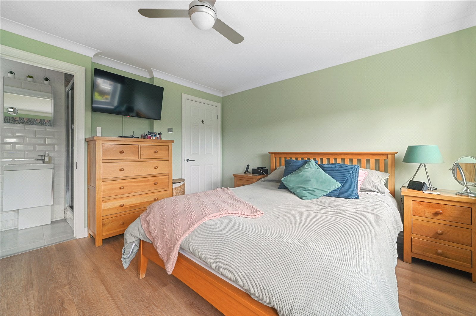 The first floor provides four well-proportioned bedrooms arranged around a central landing. The main bedroom is positioned to the rear of the property and benefits from a modern ensuite shower room. Three further bedrooms offer flexibility for use as guest rooms, children’s rooms or home offices. Serving the first floor is a contemporary bathroom, providing convenience for family and guests alike.