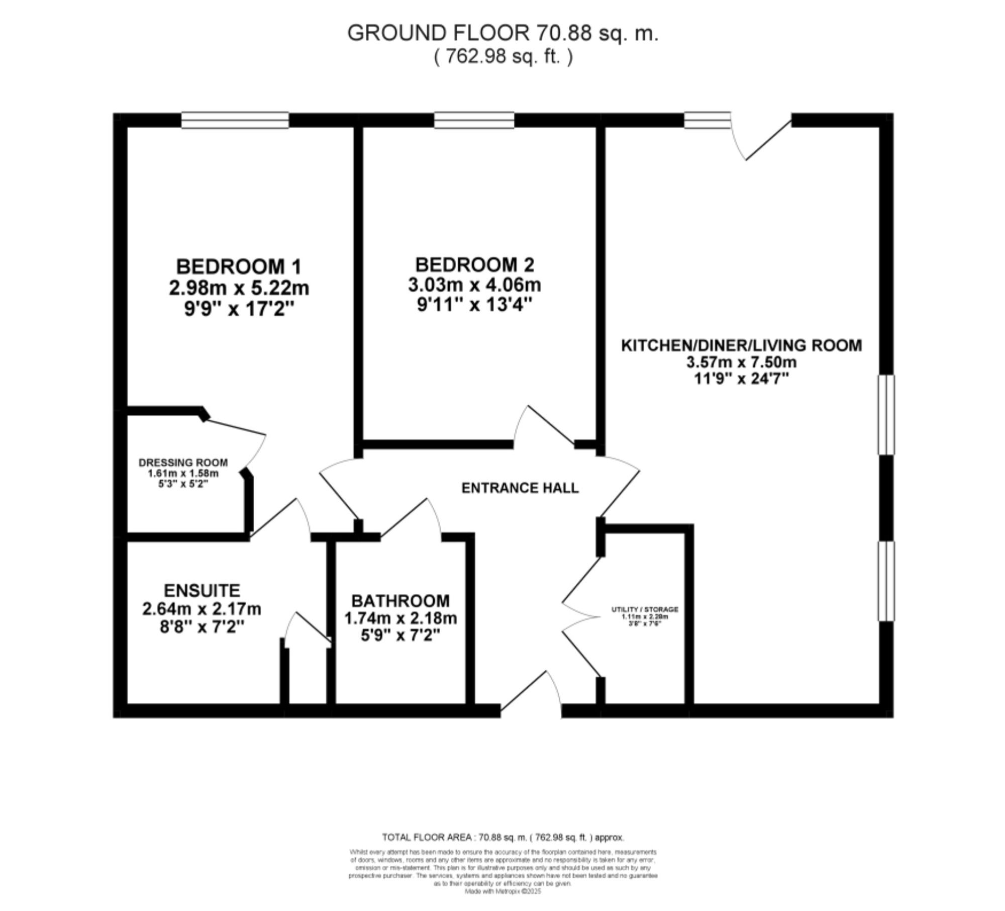- Two double bedrooms, two shower rooms and a walk in dressing room allows for optimal luxury living.