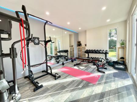 - A substantial plot with parking for multiple vehicles, a gated entrance, double garage, garden room as a gym, and the most stunning private rear gardens.