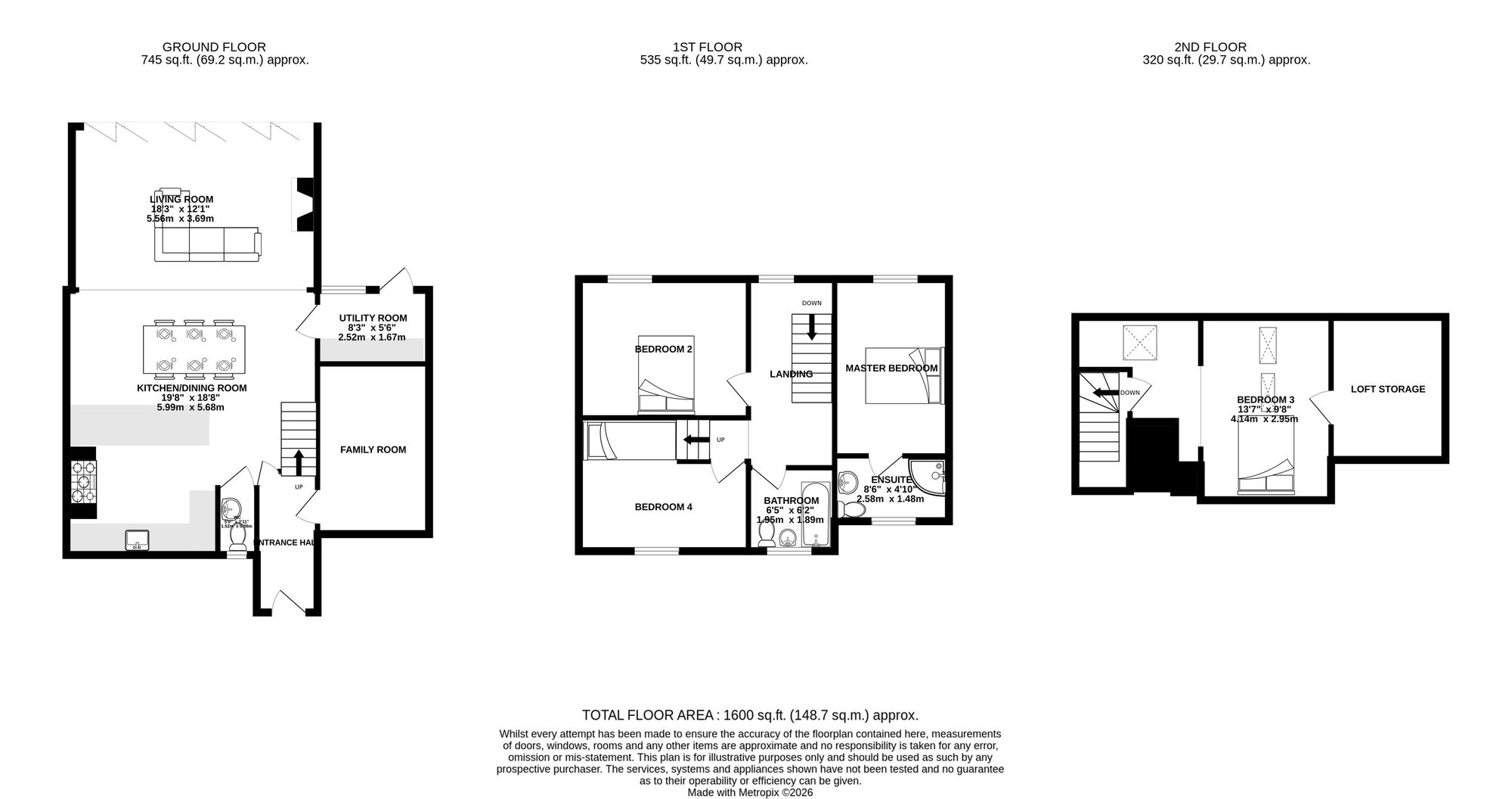- Four bedrooms including a loft conversion with skylight views over fields, plus a master bedroom with ensuite for added comfort and privacy.
