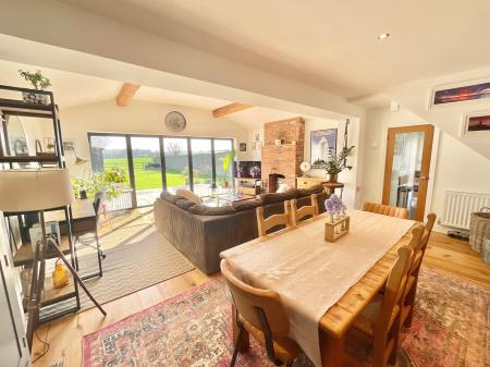- Bi-fold doors open onto countryside views, seamlessly connecting indoor and outdoor living and creating a bright, sociable space ideal for entertaining or simply unwinding.