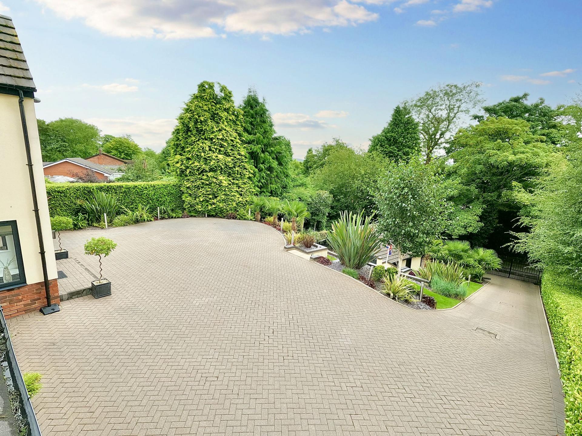 - The electric gated entrance opens up to parking on the right with a double garage, along with another integral garage & further parking at the top of the block paved driveway right by the house.