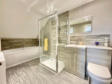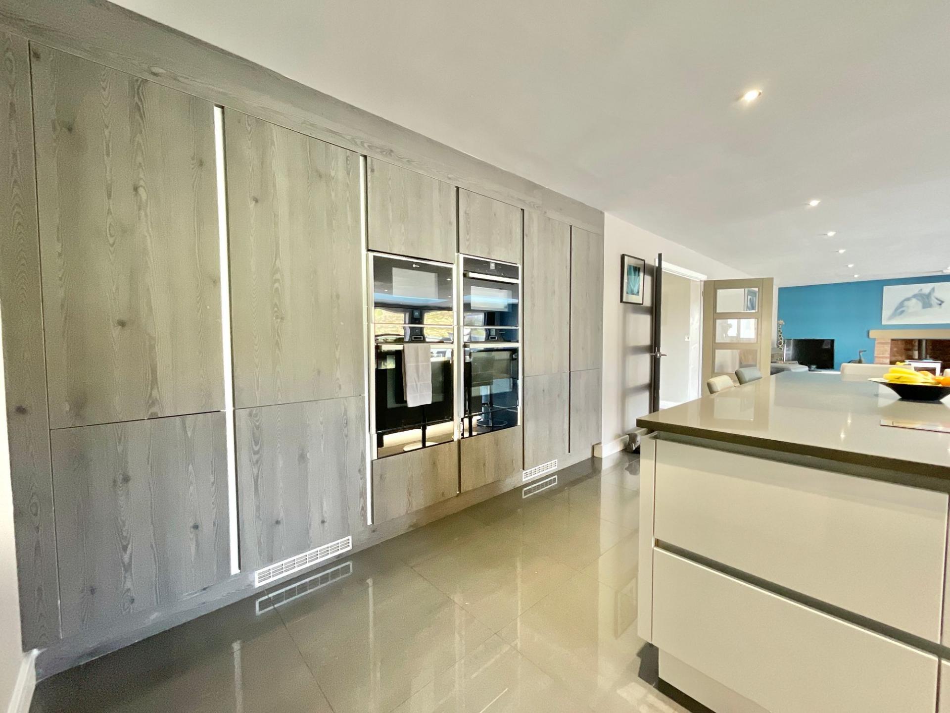 - An annexed, converted garage provides a separate kitchen/living area along with an upstairs bedroom and ensuite bathroom, ideal for guests or multi generational living.