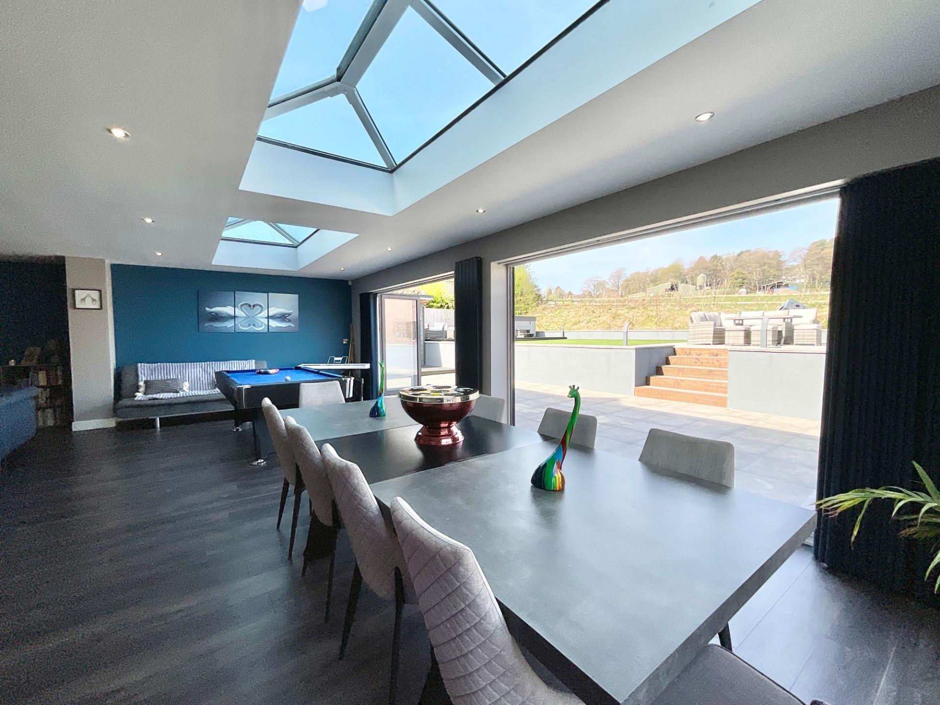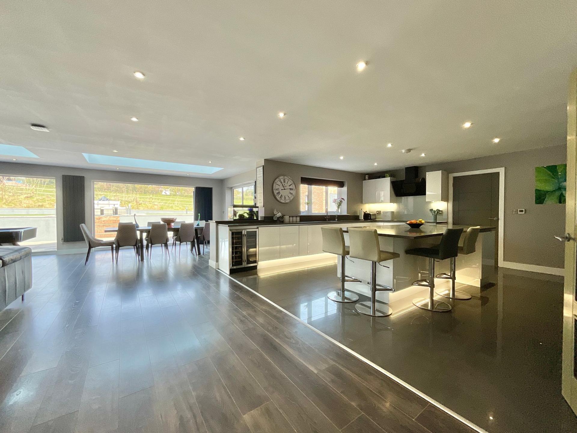 - In the main house enjoy five spacious bedrooms and three bathrooms, along with a living room, office, utility and open kitchen/diner/family room to the rear.