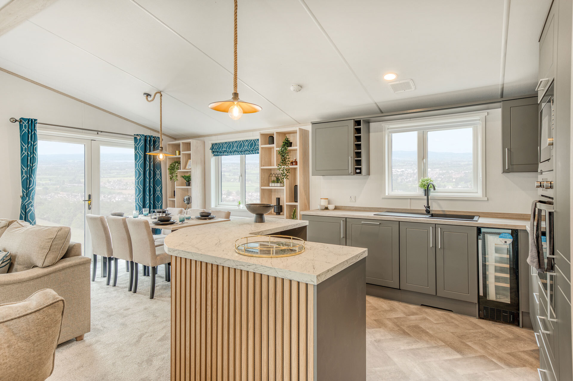 This 40ft x 20ft, 2-bedroom Atlas Lilac Lodge offers a spacious and high-quality living environment with residential specification, ensuring comfort throughout the year. Designed for practicality and style, it features double glazing and central heating for warmth and efficiency.