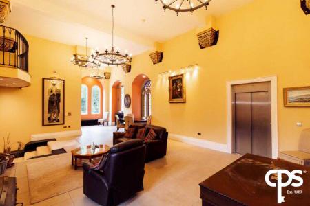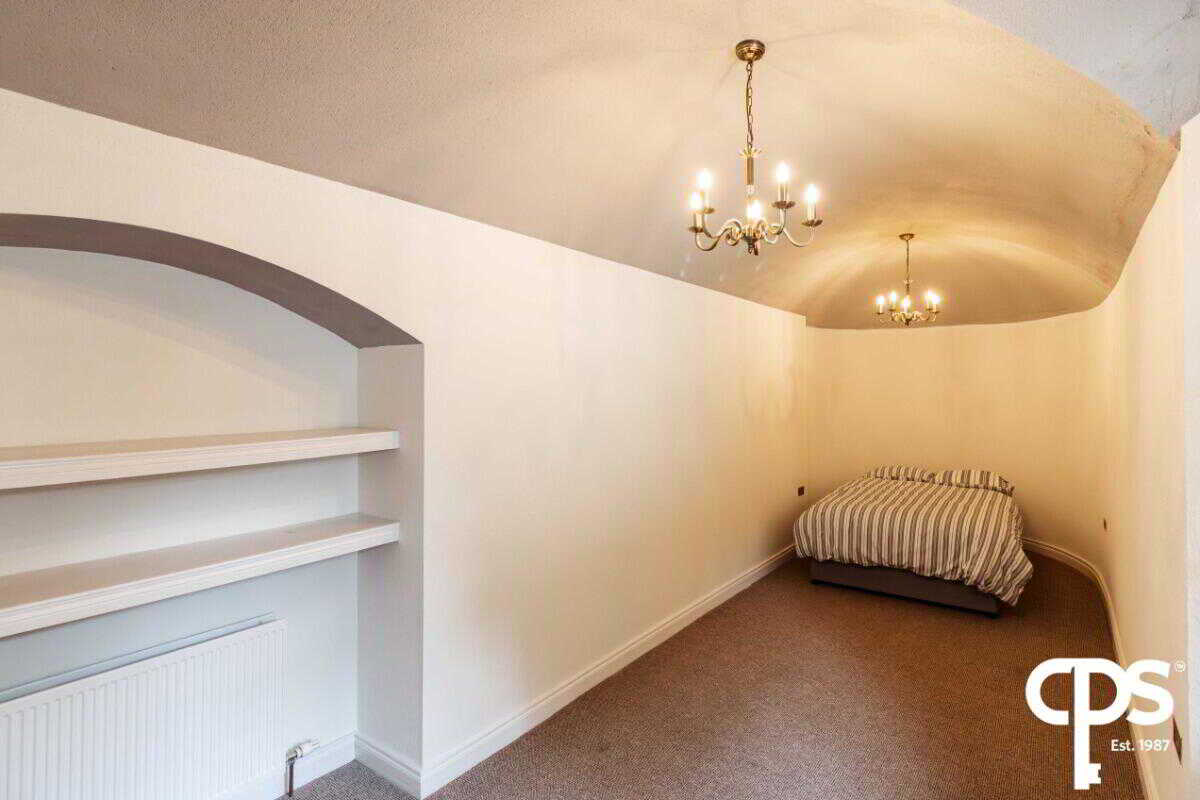 To the top floor of this unique property is an outstanding piece architectural design to provide a room that can be utilised as an additional reception room/function area. To the area which is currently be used as a living space comes with carpeted flooring throughout and houses an open fireplace which sits on a slated hearth and granite mantelpiece surround. The room is radiated with natural light with its fitted sky lights and stained glassed windows surrounding. This room can be accessed by the old-fashioned spiral staircase or via the lift while also benefits with a slightly raised area in the tower of the castle.