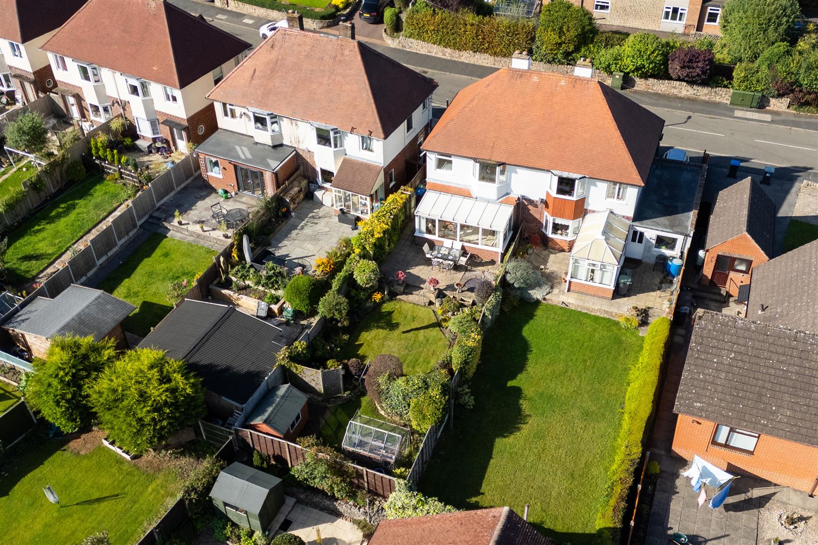 - Established gardens with a greenhouse, shed, and services.