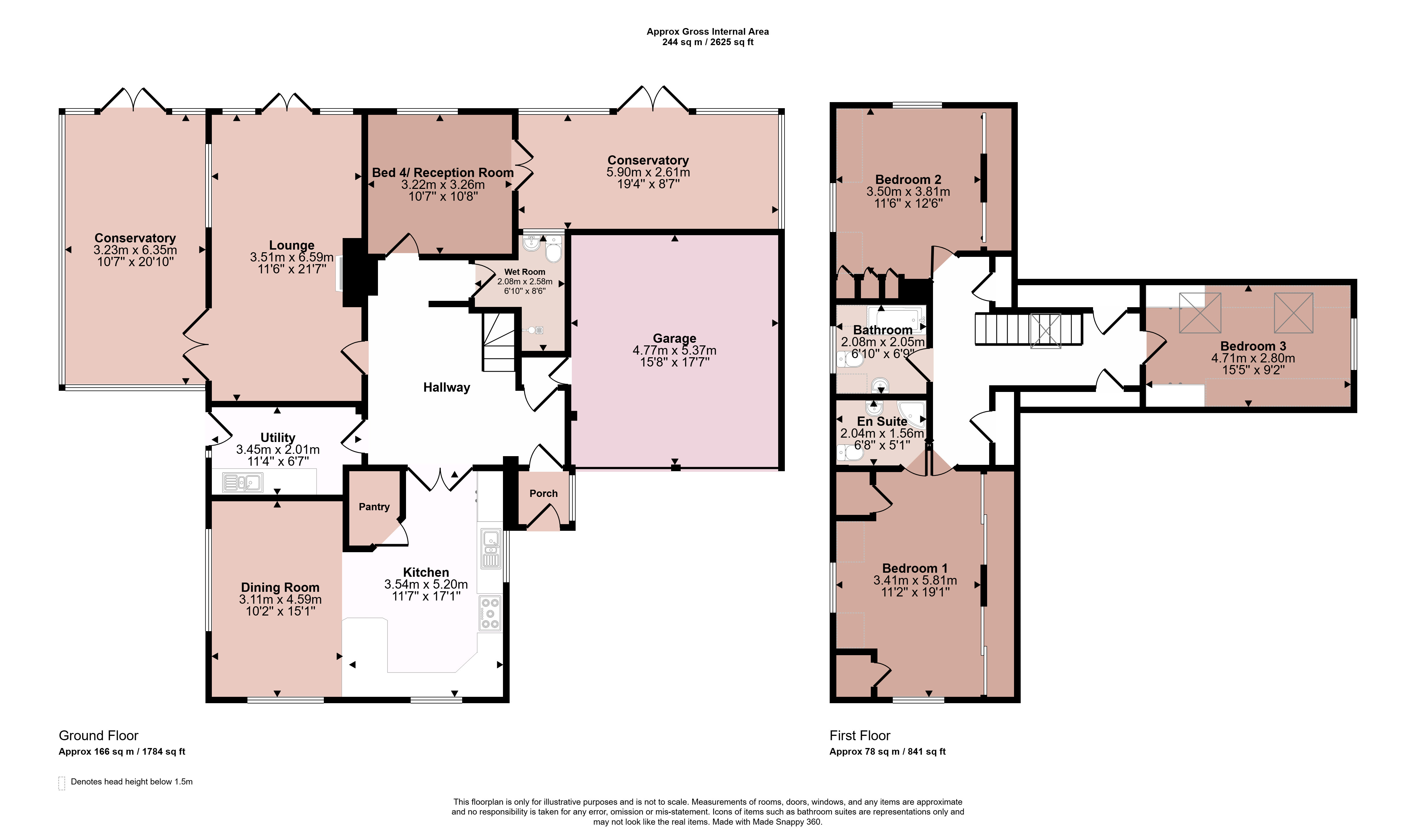 Located within the highly regarded village of Long Clawson in the Vale of Belvoir, is this deceptive detached home providing bedrooms and bathrooms/en-suites on both the ground and first floor levels for ultimate flexibility. The accommodation is sizeable with an impressive entrance hallway and a beautifully light and large dining kitchen with integrated appliances and granite tops as well as a walk-in pantry. The principal reception room is vast benefitting from French doors to the garden and a multi fuel burning stove. One of the ground floor rooms would make an ideal sitting room or bedroom with an adjacent wet room. Completing the ground floor is a dining room and two large conservatories. On the first floor the landing leads to three bedrooms all with integrated wardrobes and eaves storage with the principal bedroom having an en-suite shower room and a further bathroom serving the remainder rooms. Outside there is a large, gravelled driveway capable of parking numerous vehicles, double garage with electric doors and a fully enclosed landscaped rear garden. Early viewing is strongly advised to appreciate the size of accommodation on offer. It is well presented throughout and provides ready to move in to accommodation.