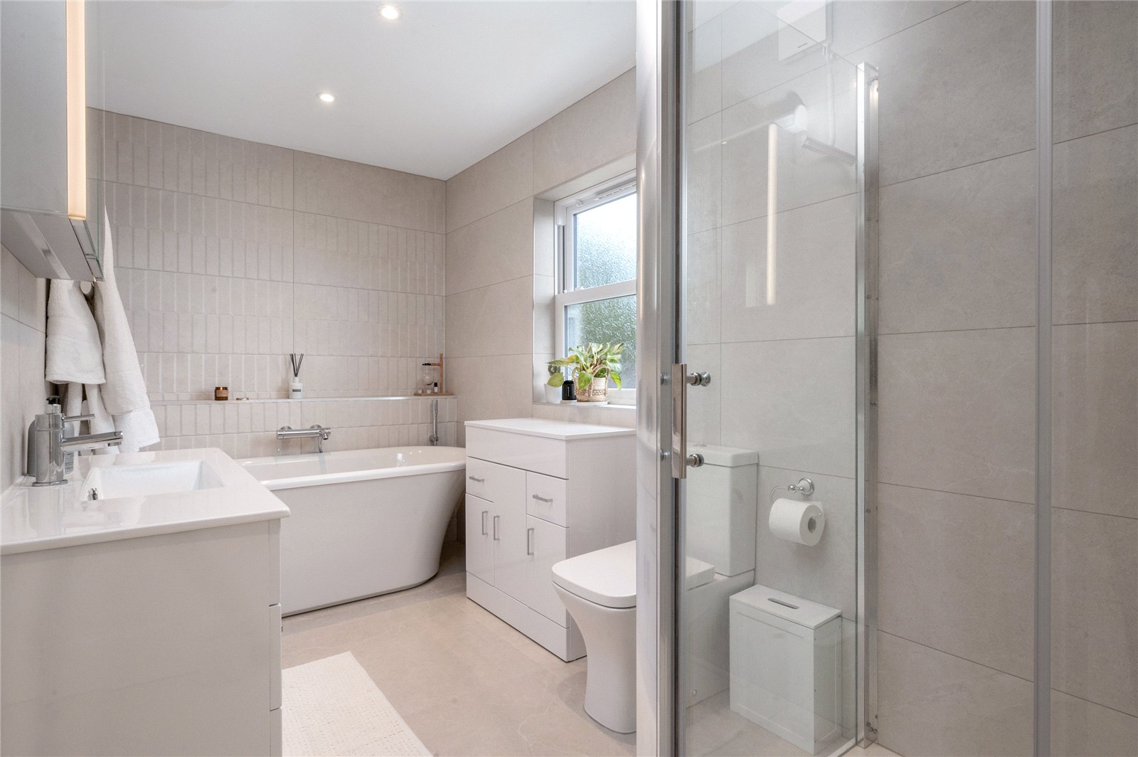 De Bosco house is a rare offering to the open market, a quintessential English country home offering a high quality and beautifully presented accommodation. The entrance to the property is most impressive with a sweeping return staircase with views to a galleried landing and double height ceiling. On the ground floor there are three reception rooms in addition to a large, refitted living/dining kitchen, all with tall Georgian style sash windows. The kitchen has recently been refitted with family living and entertaining in mind with a central island, integrated appliances and wide bi-folding doors opening on to an external patio terrace. Completing the ground floor is a rear hallway, utility and cloaks WC. On the first floor a central landing leads off to five impressive bedrooms with the principal bedroom having its own luxury refitted shower room and dressing room. There is also a second bedroom with luxury en-suite and a refitted luxury family bathroom serving the remaining of the rooms. Outside, the property is located off a private driveway with triple garaging and beautifully designed and landscaped manicured gardens which incorporates a large wrap around paved terrace, seating area with fire pit and copse. The property has been recently and sympathetically upgraded and oozes style and sophistication combining character features with modern fittings. The property has an idyllic location overlooking the village church and rolling countryside to the front aspect and is offered to the market with no chain.