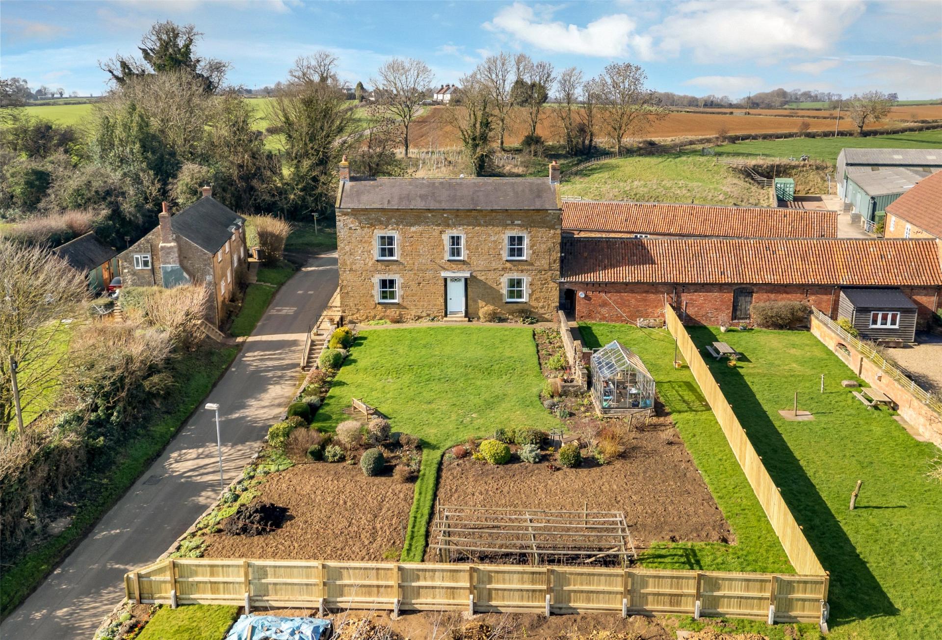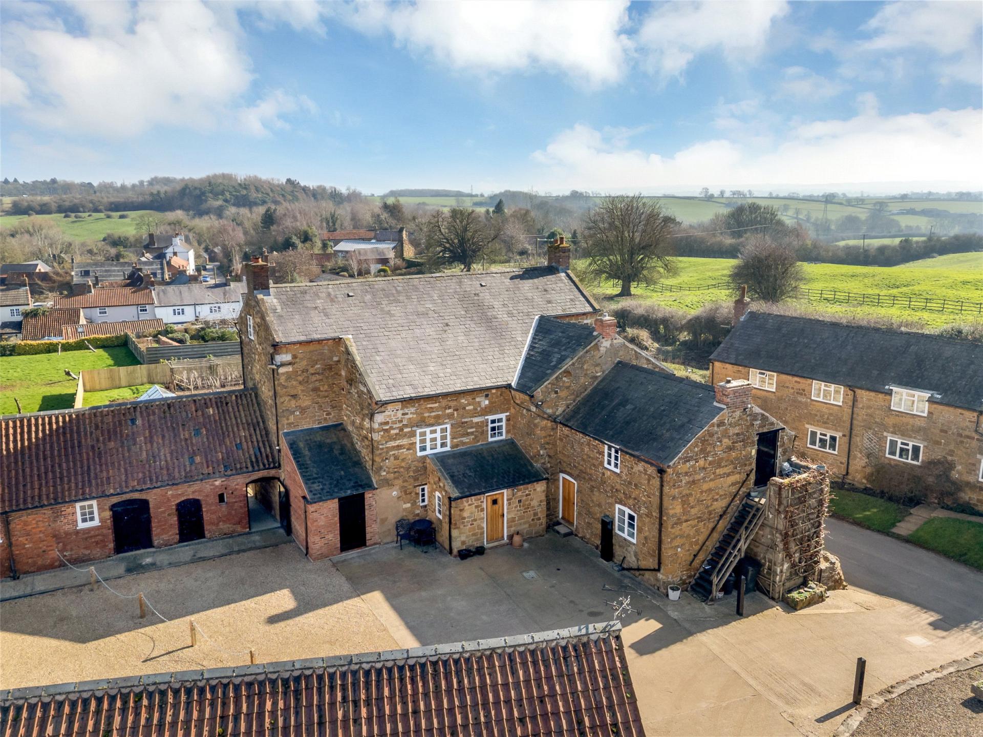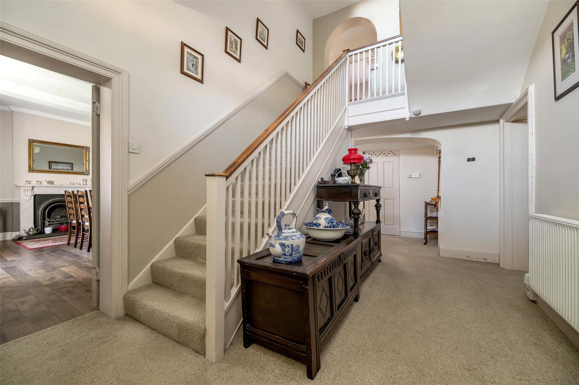 Hall Farm is a prominent and substantial home offering a wealth of accommodation, character and versatility. Having been occupied by the present owners for approaching 50 years, this is the first time this former farmhouse is offered to the market in many years. Sitting in an impressive, elevated position, there is a highly attractive entrance hall with return staircase and gallery to the top floor. From the hallway, doors lead off to two formal reception rooms with high ceilings and fireplaces, currently used as the main lounge and dining room. There is a refitted breakfast kitchen with Aga, a substantial utility, separate pantry and rear entrance and plant room. The upper floors are split level with the first floor leading to three large bedrooms, two of which have en-suites, a main shower room and study area. On the second floor there are two further large rooms, one with en-suite as well as a large home office. Complementing the accommodation is a one bedroom self-contained flat, approached via an external staircase and makes for an ideal rental Airbnb or accommodation for a family member. Outside the property has an established garden predominantly situated at the front of the property with access to a variety of single storey brick built barns and a generous driveway with off road parking. Early viewing of the property is strongly advised to appreciate the individual nature of the property, the size of accommodation and its superb setting.