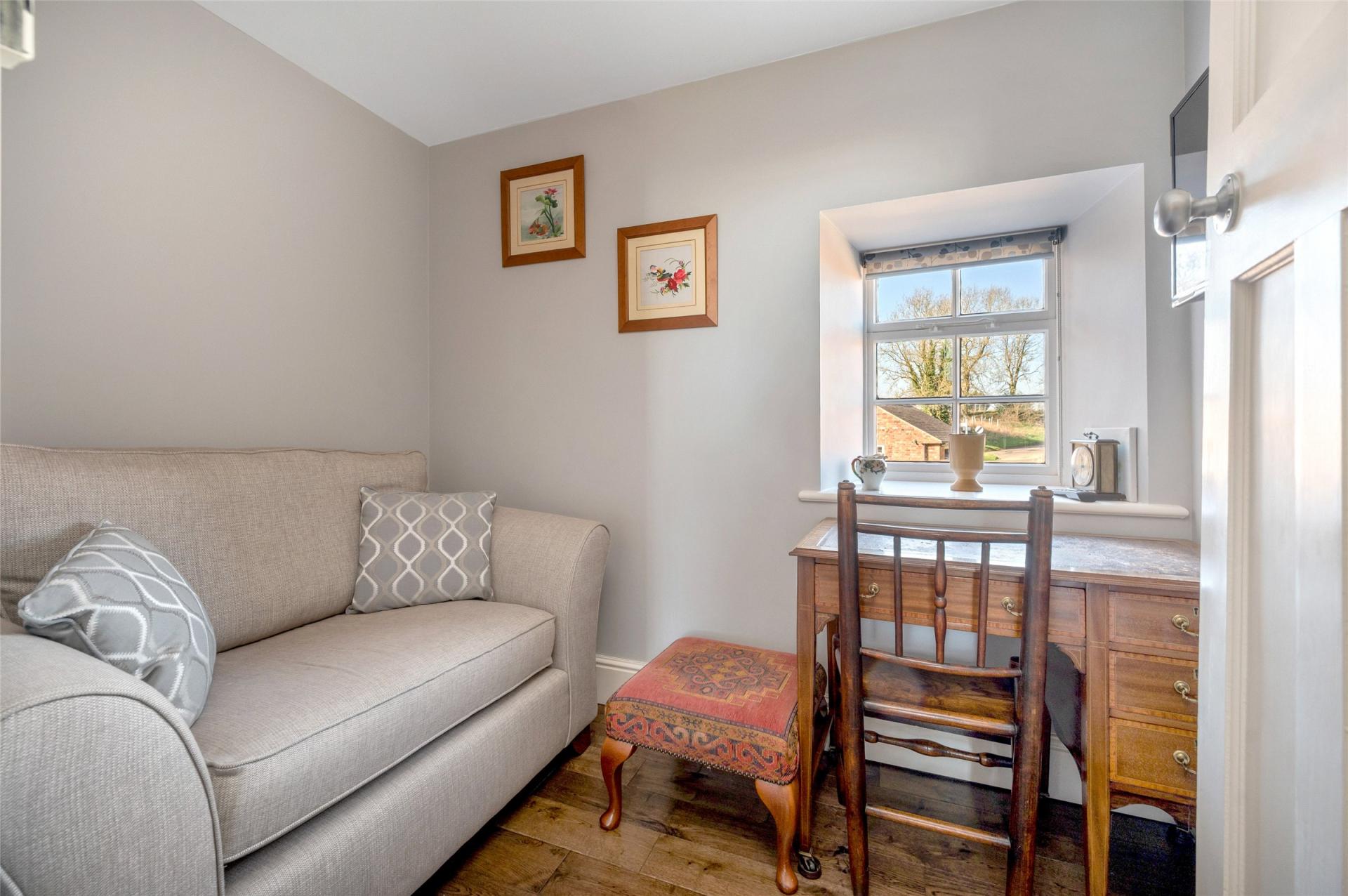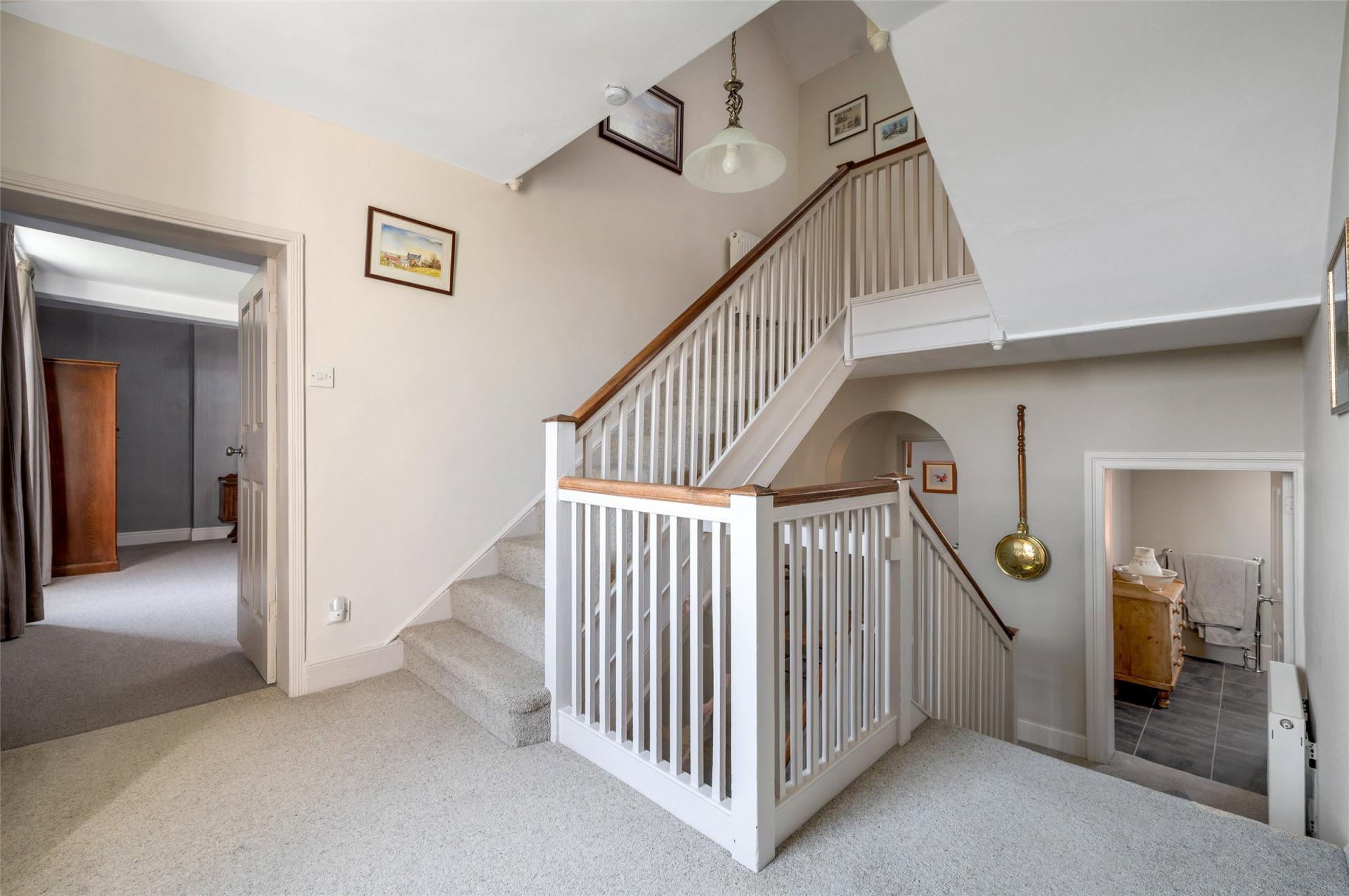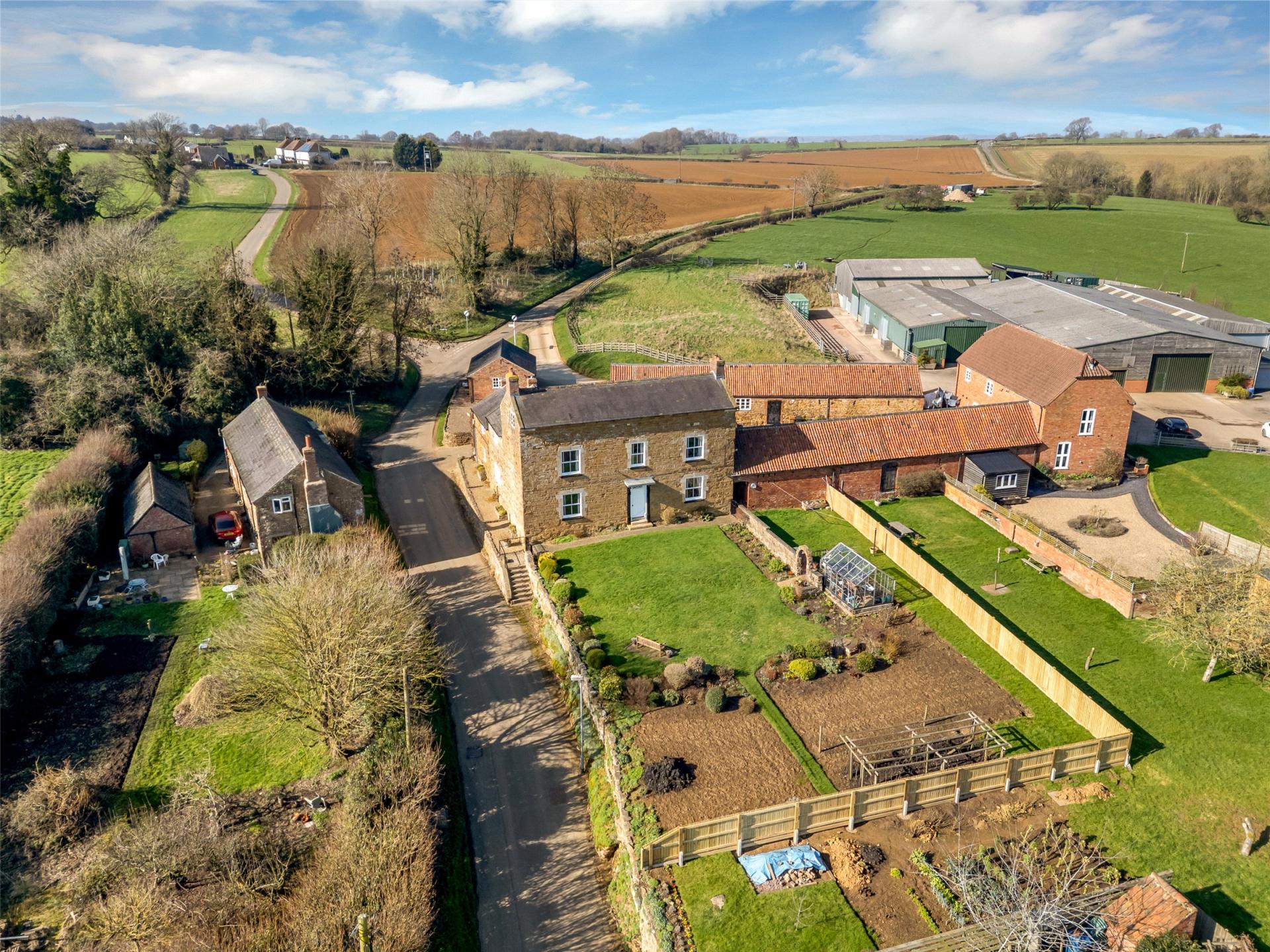 Hall Farm is a prominent and substantial home offering a wealth of accommodation, character and versatility. Having been occupied by the present owners for approaching 50 years, this is the first time this former farmhouse is offered to the market in many years. Sitting in an impressive, elevated position, there is a highly attractive entrance hall with return staircase and gallery to the top floor. From the hallway, doors lead off to two formal reception rooms with high ceilings and fireplaces, currently used as the main lounge and dining room. There is a refitted breakfast kitchen with Aga, a substantial utility, separate pantry and rear entrance and plant room. The upper floors are split level with the first floor leading to three large bedrooms, two of which have en-suites, a main shower room and study area. On the second floor there are two further large rooms, one with en-suite as well as a large home office. Complementing the accommodation is a one bedroom self-contained flat, approached via an external staircase and makes for an ideal rental Airbnb or accommodation for a family member. Outside the property has an established garden predominantly situated at the front of the property with access to a variety of single storey brick built barns and a generous driveway with off road parking. Early viewing of the property is strongly advised to appreciate the individual nature of the property, the size of accommodation and its superb setting.
